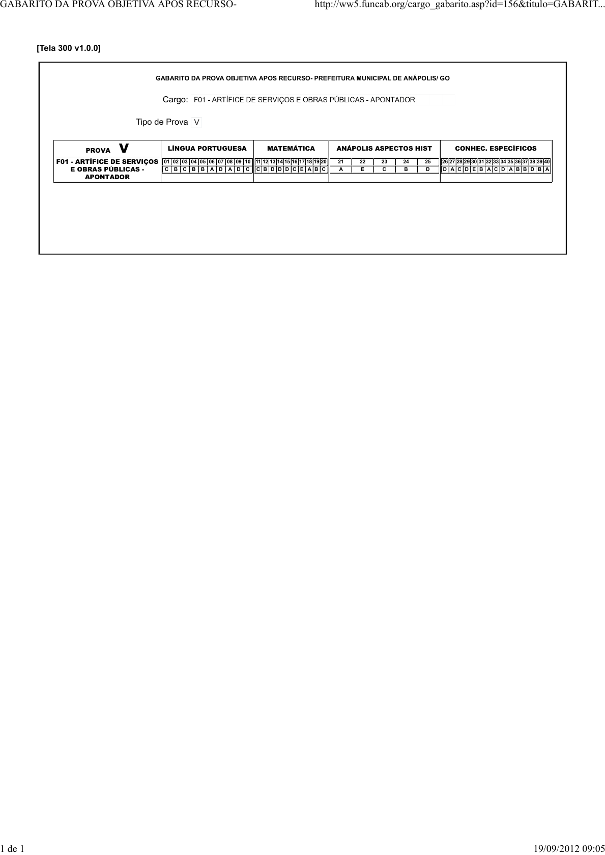 pcimarkpci MDAwMDowMDAwOjAwMDA6MDAwMDowMDAwOmZmZmY6MmRhMDo1YTc4:RnJpLCAxMyBBdWcgMjAyMSAxNzozMjozOCAtMDMwMA== [Tela 300 v1.0.0] GABARITO DA PROVA OBJETIVA APOS RECURSO- PREFEITURA MUNICIPAL DE ANÁPOLIS/ GO Cargo: Tipo de Prova PROVA V LÍNGUA PORTUGUESA MATEMÁTICA ANÁPOLIS ASPECTOS HIST CONHEC. ESPECÍFICOS F01 - ARTÍFICE DE SERVIÇOS E OBRAS PÚBLICAS - APONTADOR 01 02 03 04 05 06 07 08 09 10 C B C B B A D A D C 11 12 13 14 15 16 17 18 19 20 C B D D D C E A B C 21 22 23 24 25 A E C B D 26 27 28 29 30 31 32 33 34 35 36 37 38 39 40 D A C D E B A C D A B B D B A GABARITO DA PROVA OBJETIVA APOS RECURSO- http://ww5.funcab.org/cargo_gabarito.asp?id=156&titulo=GABARIT... 1 de 1 19/09/2012 09:05 pcimarkpci MDAwMDowMDAwOjAwMDA6MDAwMDowMDAwOmZmZmY6MmRhMDo1YTc4:RnJpLCAxMyBBdWcgMjAyMSAxNzozMjozOCAtMDMwMA== [Tela 300 v1.0.0] GABARITO DA PROVA OBJETIVA APOS RECURSO- PREFEITURA MUNICIPAL DE ANÁPOLIS/ GO Cargo: Tipo de Prova PROVA V LÍNGUA PORTUGUESA MATEMÁTICA ANÁPOLIS ASPECTOS HIST CONHEC. ESPECÍFICOS F02 - ARTÍFICE DE SERVIÇOS E OBRAS PÚBLICAS - ARMADOR 01 02 03 04 05 06 07 08 09 10 C B C B B A D A D C 11 12 13 14 15 16 17 18 19 20 C B D D D C E A B C 21 22 23 24 25 A E C B D 26 27 28 29 30 31 32 33 34 35 36 37 38 39 40 E B D B A C A B E C B D C A C GABARITO DA PROVA OBJETIVA APOS RECURSO- http://ww5.funcab.org/cargo_gabarito.asp?id=156&titulo=GABARIT... 1 de 1 19/09/2012 09:05 pcimarkpci MDAwMDowMDAwOjAwMDA6MDAwMDowMDAwOmZmZmY6MmRhMDo1YTc4:RnJpLCAxMyBBdWcgMjAyMSAxNzozMjozOCAtMDMwMA== [Tela 300 v1.0.0] GABARITO DA PROVA OBJETIVA APOS RECURSO- PREFEITURA MUNICIPAL DE ANÁPOLIS/ GO Cargo: Tipo de Prova PROVA V LÍNGUA PORTUGUESA MATEMÁTICA ANÁPOLIS ASPECTOS HIST CONHEC. ESPECÍFICOS F03 - ARTÍFICE DE SERVIÇOS E OBRAS PÚBLICAS - CARPINTEIRO 01 02 03 04 05 06 07 08 09 10 C B C B B A D A D C 11 12 13 14 15 16 17 18 19 20 C B D D D C E A B C 21 22 23 24 25 A E C B D 26 27 28 29 30 31 32 33 34 35 36 37 38 39 40 C E D C B D A A E C B B C E B GABARITO DA PROVA OBJETIVA APOS RECURSO- http://ww5.funcab.org/cargo_gabarito.asp?id=156&titulo=GABARIT... 1 de 1 19/09/2012 09:05 pcimarkpci MDAwMDowMDAwOjAwMDA6MDAwMDowMDAwOmZmZmY6MmRhMDo1YTc4:RnJpLCAxMyBBdWcgMjAyMSAxNzozMjozOCAtMDMwMA== [Tela 300 v1.0.0] GABARITO DA PROVA OBJETIVA APOS RECURSO- PREFEITURA MUNICIPAL DE ANÁPOLIS/ GO Cargo: Tipo de Prova PROVA V LÍNGUA PORTUGUESA MATEMÁTICA ANÁPOLIS ASPECTOS HIST CONHEC. ESPECÍFICOS F05 - ARTÍFICE DE SERVIÇOS E OBRAS PÚBLICAS - ENCANADOR 01 02 03 04 05 06 07 08 09 10 C B C B B A D A D C 11 12 13 14 15 16 17 18 19 20 C B D D D C E A B C 21 22 23 24 25 A E C B D 26 27 28 29 30 31 32 33 34 35 36 37 38 39 40 E B C A C E D E C B A C A D E GABARITO DA PROVA OBJETIVA APOS RECURSO- http://ww5.funcab.org/cargo_gabarito.asp?id=156&titulo=GABARIT... 1 de 1 19/09/2012 09:05 pcimarkpci MDAwMDowMDAwOjAwMDA6MDAwMDowMDAwOmZmZmY6MmRhMDo1YTc4:RnJpLCAxMyBBdWcgMjAyMSAxNzozMjozOCAtMDMwMA== [Tela 300 v1.0.0] GABARITO DA PROVA OBJETIVA APOS RECURSO- PREFEITURA MUNICIPAL DE ANÁPOLIS/ GO Cargo: Tipo de Prova PROVA V LÍNGUA PORTUGUESA MATEMÁTICA ANÁPOLIS ASPECTOS HIST CONHEC. ESPECÍFICOS F06 - ARTÍFICE DE SERVIÇOS E OBRAS PÚBLICAS - JARDINEIRO 01 02 03 04 05 06 07 08 09 10 C B C B B A D A D C 11 12 13 14 15 16 17 18 19 20 C B D D D C E A B C 21 22 23 24 25 A E C B D 26 27 28 29 30 31 32 33 34 35 36 37 38 39 40 C A C E D E B D E D A B C A D GABARITO DA PROVA OBJETIVA APOS RECURSO- http://ww5.funcab.org/cargo_gabarito.asp?id=156&titulo=GABARIT... 1 de 1 19/09/2012 09:06 pcimarkpci MDAwMDowMDAwOjAwMDA6MDAwMDowMDAwOmZmZmY6MmRhMDo1YTc4:RnJpLCAxMyBBdWcgMjAyMSAxNzozMjozOCAtMDMwMA== [Tela 300 v1.0.0] GABARITO DA PROVA OBJETIVA APOS RECURSO- PREFEITURA MUNICIPAL DE ANÁPOLIS/ GO Cargo: Tipo de Prova PROVA V LÍNGUA PORTUGUESA MATEMÁTICA ANÁPOLIS ASPECTOS HIST CONHEC. ESPECÍFICOS F07 - ARTÍFICE DE SERVIÇOS E OBRAS PÚBLICAS - PEDREIRO 01 02 03 04 05 06 07 08 09 10 C B C B B A D A D C 11 12 13 14 15 16 17 18 19 20 C B D D D C E A B C 21 22 23 24 25 A E C B D 26 27 28 29 30 31 32 33 34 35 36 37 38 39 40 B E B A E D A C D B E B A E C GABARITO DA PROVA OBJETIVA APOS RECURSO- http://ww5.funcab.org/cargo_gabarito.asp?id=156&titulo=GABARIT... 1 de 1 19/09/2012 09:06 pcimarkpci MDAwMDowMDAwOjAwMDA6MDAwMDowMDAwOmZmZmY6MmRhMDo1YTc4:RnJpLCAxMyBBdWcgMjAyMSAxNzozMjozOCAtMDMwMA== [Tela 300 v1.0.0] GABARITO DA PROVA OBJETIVA APOS RECURSO- PREFEITURA MUNICIPAL DE ANÁPOLIS/ GO Cargo: Tipo de Prova PROVA V LÍNGUA PORTUGUESA MATEMÁTICA ANÁPOLIS ASPECTOS HIST CONHEC. ESPECÍFICOS F08 - ARTÍFICE DE SERVIÇOS E OBRAS PÚBLICAS - PINTOR 01 02 03 04 05 06 07 08 09 10 C B C B B A D A D C 11 12 13 14 15 16 17 18 19 20 C B D D D C E A B C 21 22 23 24 25 A E C B D 26 27 28 29 30 31 32 33 34 35 36 37 38 39 40 A B D A E C A D B E C C B D E GABARITO DA PROVA OBJETIVA APOS RECURSO- http://ww5.funcab.org/cargo_gabarito.asp?id=156&titulo=GABARIT... 1 de 1 19/09/2012 09:06 pcimarkpci MDAwMDowMDAwOjAwMDA6MDAwMDowMDAwOmZmZmY6MmRhMDo1YTc4:RnJpLCAxMyBBdWcgMjAyMSAxNzozMjozOCAtMDMwMA== [Tela 300 v1.0.0] GABARITO DA PROVA OBJETIVA APOS RECURSO- PREFEITURA MUNICIPAL DE ANÁPOLIS/ GO Cargo: Tipo de Prova PROVA V LÍNGUA PORTUGUESA MATEMÁTICA ANÁPOLIS ASPECTOS HIST CONHEC. ESPECÍFICOS F09 - ARTÍFICE DE SERVIÇOS E OBRAS PÚBLICAS - SERRALHEIRO 01 02 03 04 05 06 07 08 09 10 C B C B B A D A D C 11 12 13 14 15 16 17 18 19 20 C B D D D C E A B C 21 22 23 24 25 A E C B D 26 27 28 29 30 31 32 33 34 35 36 37 38 39 40 C E A E D A B E B A C D B D E GABARITO DA PROVA OBJETIVA APOS RECURSO- http://ww5.funcab.org/cargo_gabarito.asp?id=156&titulo=GABARIT... 1 de 1 19/09/2012 09:07 pcimarkpci MDAwMDowMDAwOjAwMDA6MDAwMDowMDAwOmZmZmY6MmRhMDo1YTc4:RnJpLCAxMyBBdWcgMjAyMSAxNzozMjozOCAtMDMwMA== [Tela 300 v1.0.0] GABARITO DA PROVA OBJETIVA APOS RECURSO- PREFEITURA MUNICIPAL DE ANÁPOLIS/ GO Cargo: Tipo de Prova PROVA V LÍNGUA PORTUGUESA MATEMÁTICA ANÁPOLIS ASPECTOS HIST CONHEC. ESPECÍFICOS F10 - ARTÍFICE DE SERVIÇOS E OBRAS PÚBLICAS - SOLDADOR 01 02 03 04 05 06 07 08 