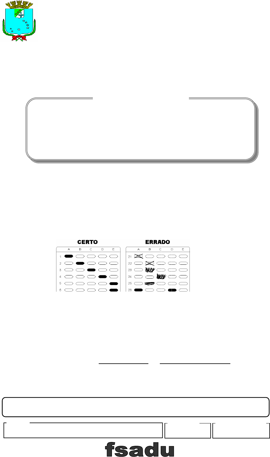 Verifique na Folha de Respostas se o seu nome e número do documento de identificação estão