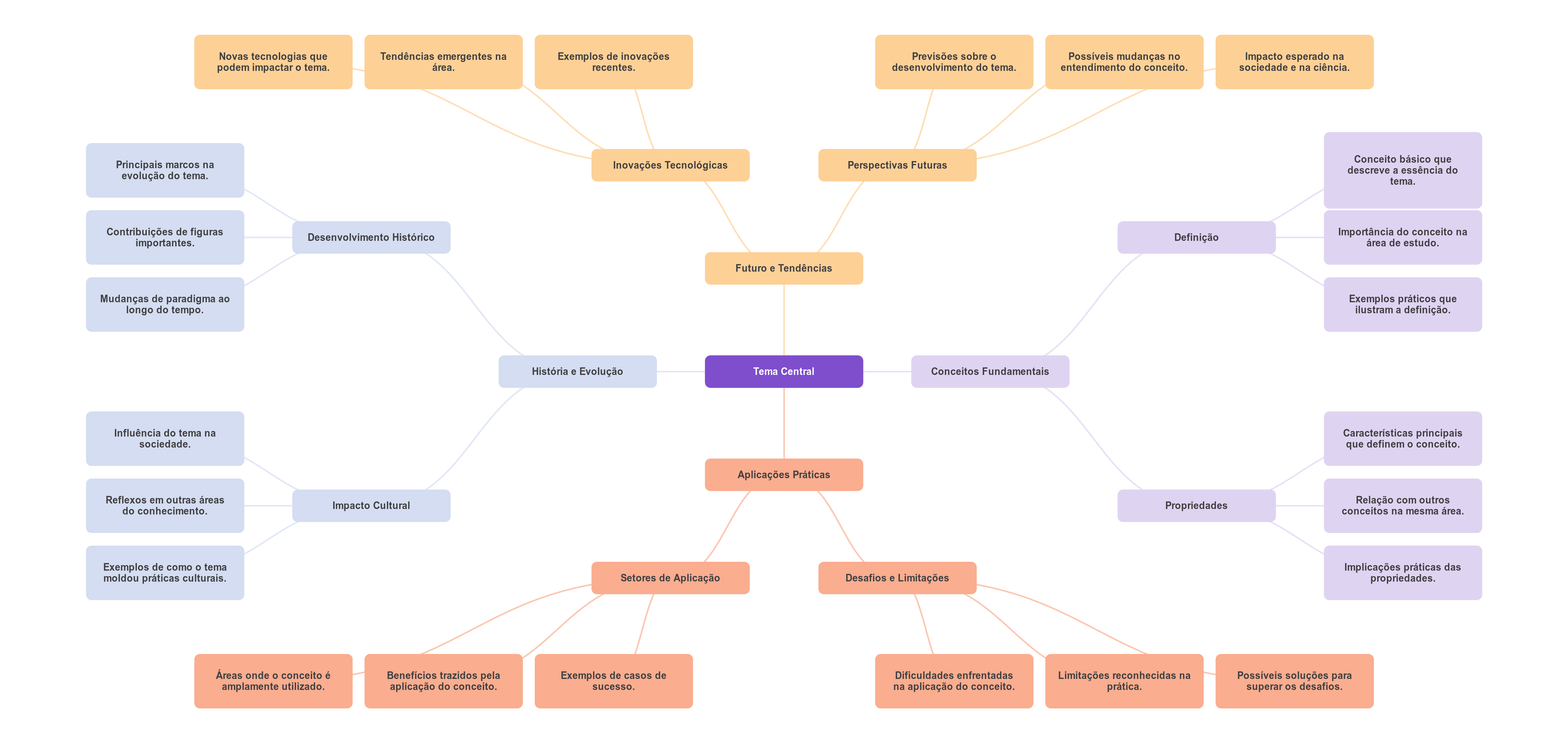 Novas tecnologias que Tendências emergentes na Exemplos de inovações Previsões sobre Possíveis mudanças no Impacto esperado na podem impactar tema. área. recentes. desenvolvimento do tema. entendimento do conceito. sociedade e na ciência. Principais marcos na Conceito básico que Inovações Tecnológicas Perspectivas Futuras descreve a essência do evolução do tema. tema. Contribuições de figuras Desenvolvimento Histórico importantes. Definição Importância do conceito na área de estudo. Futuro e Tendências Mudanças de paradigma ao Exemplos práticos que longo do tempo. ilustram a definição. História e Evolução Tema Central Conceitos Fundamentais Influência do tema na Características principais sociedade. que definem o conceito. Aplicações Práticas Reflexos em outras áreas do conhecimento. Impacto Cultural Propriedades Relação com outros conceitos na mesma área. Exemplos de como o tema Implicações práticas das moldou práticas culturais. Setores de Aplicação Desafios e Limitações propriedades. Áreas onde conceito é Benefícios trazidos pela Exemplos de casos de Dificuldades enfrentadas Limitações reconhecidas na Possíveis soluções para amplamente utilizado. aplicação do conceito. sucesso. na aplicação do conceito. prática. superar os desafios.