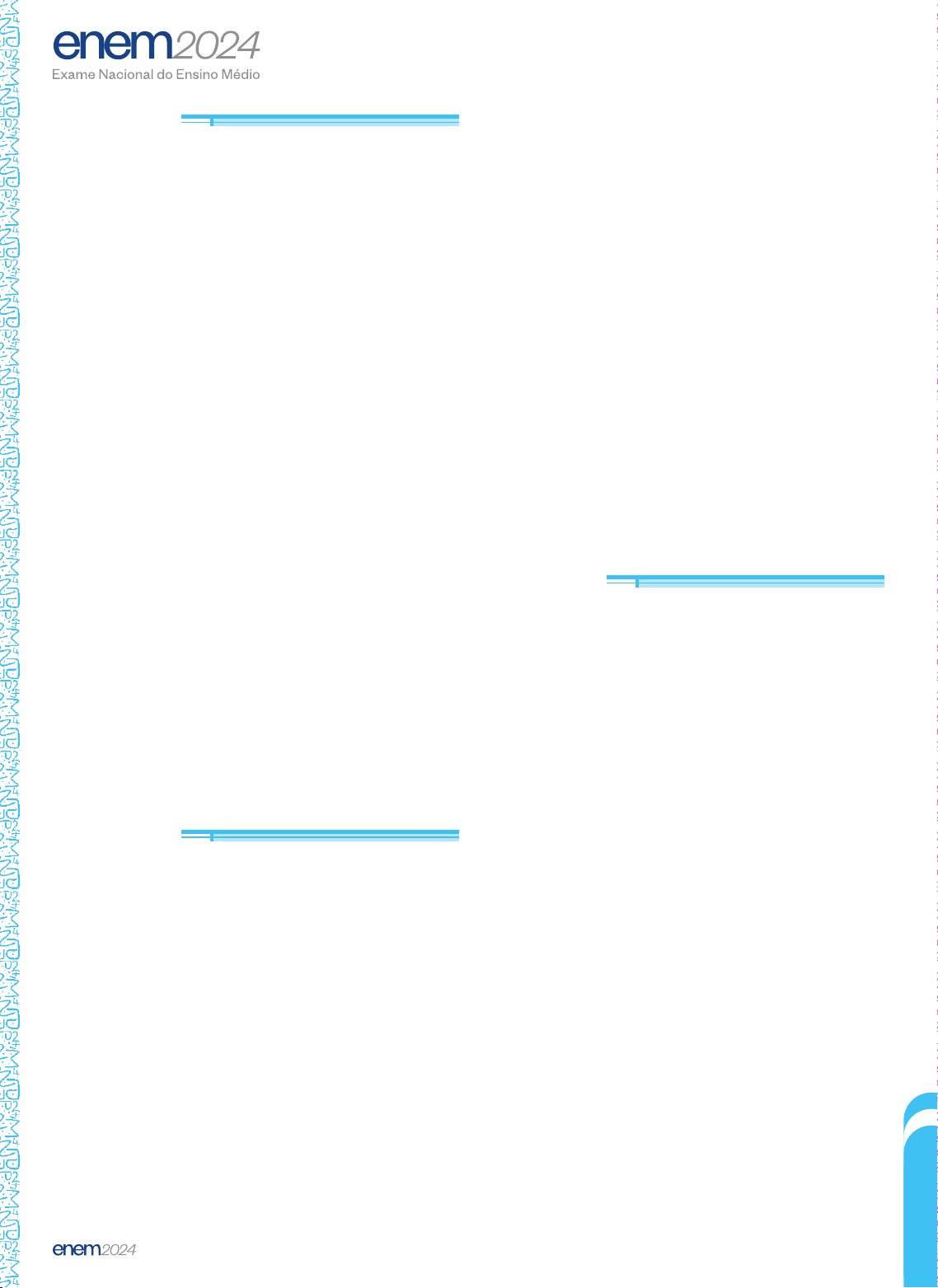 QUESTÃO 12 A Língua da Tabatinga, falada na cidade de Bom Despacho, Minas Gerais, foi por muito tempo estigmatizada devido à sua origem e à própria classe social de seus falantes, pois, segundo uma pesquisadora, era falada por “meninos pobres vindos da Tabatinga ou de Cruz de Monte — ruas da periferia da cidade cujos habitantes sempre foram tidos por marginais”. Conhecida por antigos como a “língua dos engraxates”, pois muitos trabalhadores desse ofício conversavam nessa língua enquanto lustravam sapatos na praça da matriz, a Língua da Tabatinga era utilizada por negros escravizados como uma espécie de “língua secreta”, um código para trocarem informações de como conseguir alimentos, ou para planejar fugas de seus senhores sem risco de serem descobertos por eles. De acordo com um documento do Iphan (2011), os falantes da língua apresentam uma forte consciência de sua relação com a descendência africana e da importância de preservar a “fala que os identifica na região”. Essa mudança de compreensão tangencia aspectos de pertencimento, pois, à medida que o falante da Língua da Tabatinga se identifica com a origem afro-brasileira, ele passa a ver essa língua como um legado recebido e tem o cuidado de transmiti-la para outras gerações. A concentração de falantes dessa língua está na faixa entre 21 e 60 anos de idade. Disponível em: www.historiaeparcerias2019.rj.anpuh.org. Acesso em: 3 fev. 2024 (adaptado). A Língua da Tabatinga tem sido preservada porque o(a) A seu registro passou da forma oral para a escrita. B classe social de seus usuários ganhou prestígio. C sua função inicial se manteve ao longo dos anos. D sentimento de identidade linguística tem se consolidado. E perfil etário de seus falantes tem se tornado homogêneo. QUESTÃO 13 Diante do pouco dinheiro para produtos básicos de sobrevivência, são as adolescentes o alvo mais vulnerável à precariedade menstrual. Sofrem com dois fatores: o desconhecimento da importância da higiene menstrual para sua saúde e a dependência dos pais ou familiares para a compra do absorvente, que acaba entrando na lista de artigos supérfluos da casa. A falta do absorvente afeta diretamente o desempenho escolar dessas estudantes e, como consequência, restringe o desenvolvimento de seu potencial na vida adulta. Dados da Pesquisa Nacional de Saúde (PNS), do IBGE, revelaram que, das meninas entre 10 e 19 anos que deixaram de fazer alguma atividade (estudar, realizar afazeres domésticos, trabalhar ou, até mesmo, brincar) por problemas de saúde nos 14 dias anteriores à data da pesquisa, 2,88% deixaram de fazê-la por problemas menstruais. Para efeitos de comparação, o índice de meninas que relataram não ter conseguido realizar alguma de suas atividades por gravidez e parto foi menor: 2,55%. Dados da ONU apontam que, no mundo, uma em cada dez meninas falta às aulas durante o período menstrual. No Brasil, esse número é ainda maior: uma entre quatro estudantes já deixou de ir à escola por não ter absorventes. Com isso, perdem, em média, até 45 dias de aula, por ano letivo, como revela o levantamento Impacto da Pobreza Menstrual no Brasil. O ato biológico de menstruar acaba por virar mais um fator de desigualdade de oportunidades entre os gêneros. Disponível em: www12.senado.leg.br. Acesso em: 21 jan. 2024 (adaptado). Esse texto é marcado pela função referencial da linguagem, uma vez que cumpre o propósito de A sugerir soluções para um problema de ordem social. B estabelecer uma relação entre menstruação e gravidez. C comparar o desempenho acadêmico de mulheres e homens. D informar o leitor sobre o impacto da pobreza menstrual na vida das mulheres. E orientar o público sobre a necessidade de rotinas de autocuidado na adolescência. QUESTÃO 14 Maranhenses que moram longe matam a saudade da terra natal usando expressões próprias do estado. Se o maranhês impressiona e desperta a curiosidade de quem mora no próprio Maranhão, imagine de quem vem de outros estados e países? A variedade linguística local é enorme e o modo de falar tão próprio e característico dos maranhenses vem conquistando muita gente e inspirando títulos e muito conteúdo digital com a criação de podcasts, blogs, perfis na internet, além de estampar diversos tipos de produtos e serviços de empresas locais. Com saudades do Maranhão, morando há 16 anos no Rio de Janeiro, um fotógrafo maranhense criou um perfil na internet no qual compartilha a culinária, brincadeiras e o ‘dicionário’ maranhês. “A primeira vez que fui a uma padaria no Rio, na inocência, pedi 3 reais de ‘pães misturados’. Quando falei isso, as pessoas pararam e me olharam de uma forma bem engraçada, aí já fiquei ‘encabulado, ó’ e o atendente sorriu e explicou que lá não existia pão misturado e, sim, pão francês e suíço. Depois foi a minha vez de explicar sobre os pães ‘massa grossa e massa fina’”, contou o fotógrafo, com humor. Disponível em: https://oimparcial.com.br. Acesso em: 1 nov. 2021 (adaptado). A vivência relatada no texto evidencia que as variedades linguísticas A impedem o entendimento mútuo. B enaltecem o português do Maranhão. C são constitutivas do português brasileiro. D exigem a dicionarização dos termos usados. E são restritas a situações coloquiais de comunicação. *010175AZ7* ENEM2024ENEM2024ENEM2024ENEM2024ENEM2024ENEM2024ENEM2024ENEM2024ENEM2024ENEM2024ENEM2024ENEM2024ENEM2024ENEM2024ENEM2024ENEM2024ENEM2024ENEM2024ENEM2024ENEM2024ENEM2024ENEM2024ENEM2024ENEM2024ENEM2024ENEM2024ENEM20E4ENEM2024ENEM2024ENEM2024ENEM2024ENEM2024ENEM2024ENEM2024ENEM2024ENEM2024ENEM2024ENEM2024ENEM2024ENEM2024ENEM2024ENEM2024ENEM2024ENEM2024ENEM2024ENEM2024ENEM2024ENEM2024ENEM2024ENEM2024ENEM2024ENEM2024ENEM2024ENEM2024 ENEM2024ENEM2024ENEM2024ENEM2024ENEM2024ENEM2024ENEM2024ENEM2024ENEM2024ENEM2024ENEM2024ENEM2024ENEM2024ENEM2024ENEM2024ENEM2024ENEM2024ENEM2024ENEM2024E