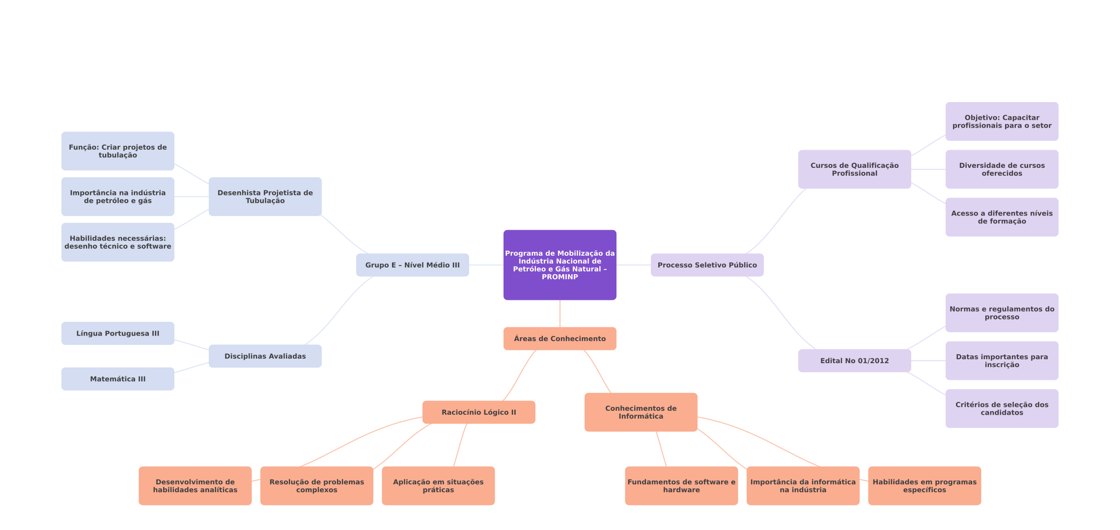 Objetivo: Capacitar profissionais para setor Função: Criar projetos de tubulação Cursos de Qualificação Diversidade de cursos Profissional oferecidos Importância na indústria Desenhista Projetista de de petróleo e gás Tubulação Acesso a diferentes níveis de formação Habilidades necessárias: desenho técnico e software Programa de Mobilização da Indústria Nacional de Grupo E Nível Médio III Processo Seletivo Público Petróleo e Gás Natural PROMINP Normas e regulamentos do processo Língua Portuguesa III Áreas de Conhecimento Disciplinas Avaliadas Edital No 01/2012 Datas importantes para inscrição Matemática III Conhecimentos de Critérios de seleção dos Raciocínio Lógico II candidatos Informática Desenvolvimento de Resolução de problemas Aplicação em situações Fundamentos de software e Importância da informática Habilidades em programas habilidades analíticas complexos práticas hardware na indústria específicos