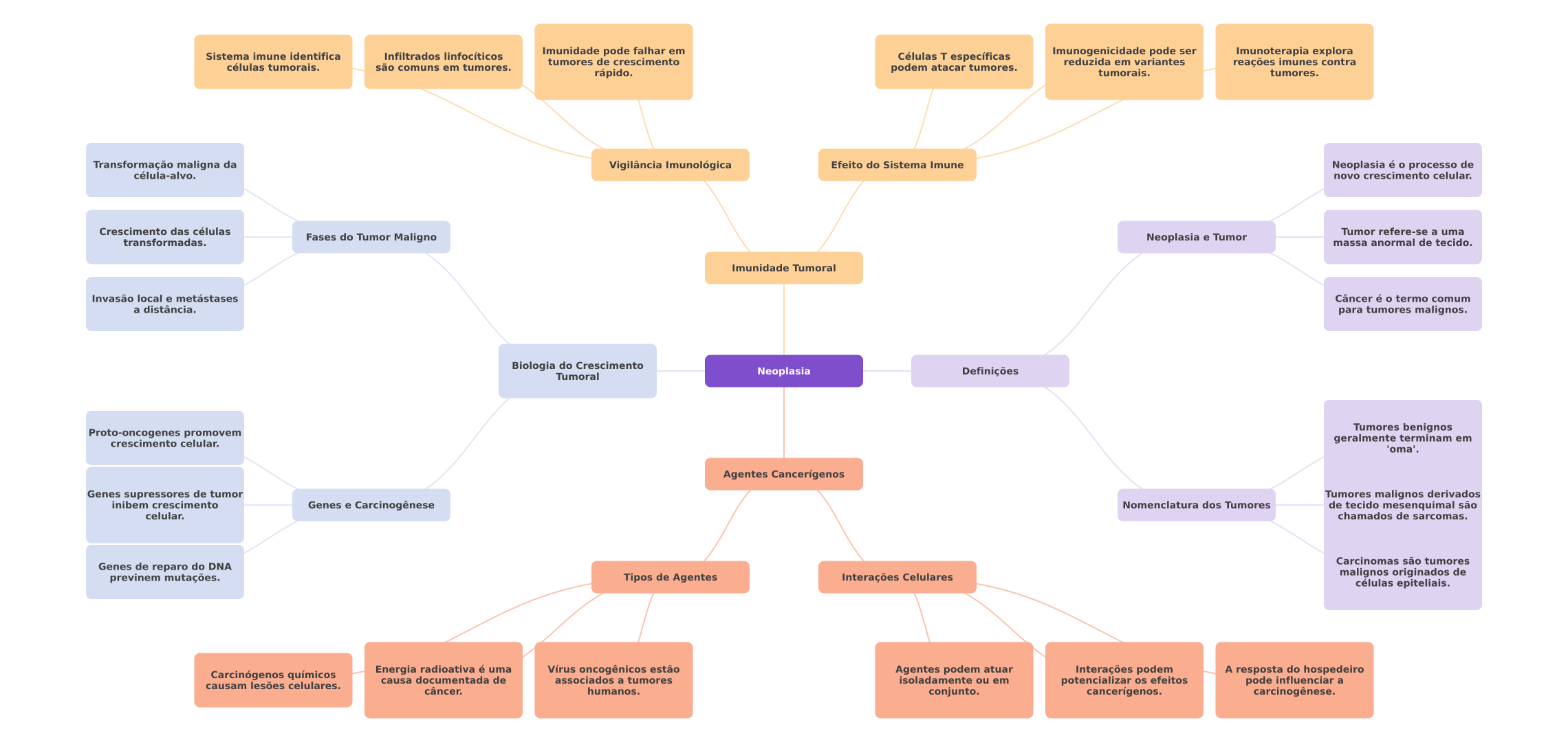 Sistema imune identifica Infiltrados linfocíticos Imunidade pode falhar em tumores de crescimento Células específicas Imunogenicidade pode ser Imunoterapia explora reduzida em variantes células tumorais. são comuns em tumores. reações imunes contra rápido. podem atacar tumores. tumorais. tumores. Transformação maligna da Vigilância Imunológica Efeito do Sistema Imune Neoplasia é processo de célula-alvo. novo crescimento celular. Crescimento das células Tumor refere-se a uma transformadas. Fases do Tumor Maligno Neoplasia e Tumor massa anormal de tecido. Imunidade Tumoral Invasão local e metástases Câncer é termo comum a distância. para tumores malignos. Biologia do Crescimento Tumoral Neoplasia Definições Tumores benignos Proto-oncogenes promovem crescimento celular. geralmente terminam em 'oma'. Agentes Cancerígenos Genes supressores de tumor Tumores malignos derivados inibem crescimento Genes e Carcinogênese Nomenclatura dos Tumores de tecido mesenquimal são celular. chamados de sarcomas. Carcinomas são tumores Genes de reparo do DNA previnem mutações. Tipos de Agentes Interações Celulares malignos originados de células epiteliais. Carcinógenos químicos Energia radioativa é uma Vírus oncogênicos estão Agentes podem atuar Interações podem A resposta do hospedeiro causa documentada de associados a tumores isoladamente ou em causam lesões celulares. potencializar os efeitos pode influenciar a câncer. humanos. conjunto. cancerígenos. carcinogênese.