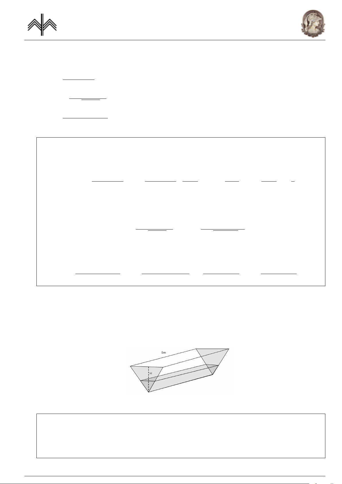 Instituto de Matemática - IM/UFRJ Cálculo Diferencial e Integral I - MAC118 - 2013/1 Gabarito primeira prova - Escola Politécnica / Escola de Química - 23/05/2013 Questão 1: (3 pontos) Calcule os limites abaixo. Justifique suas respostas. (i) lim x→1 sen (x− 1) x2 − 1 . (ii) lim x→+∞ 2x2 − 3x− 4√ x4 + 1 . (iii) lim x→0 e2x − e−2x − 4x x− senx . Solução: (i) Usando o limite fundamental, calculamos: lim x→1 sen (x− 1) x2 − 1 = lim x→1 sen (x− 1) x− 1 · 1 x + 1 = ( lim x→0 senx x )( lim x→1 1 x + 1 ) = 1 2 . (ii) Calculamos colocando os termos dominantes em evidência no denominador e no numerador. Após simplificar a fração, obtemos: lim x→+∞ 2x2 − 3x− 4√ x4 + 1 = lim x→+∞ 2− 3/x− 4/x2√ 1 + 1/x4 = 2. (iii) Usamos a regra de l’Hôpital três vezes e obtemos que lim x→0 e2x − e−2x − 4x x− senx = lim x→0 2e2x + 2e−2x − 4 1− cos x lim x→0 4e2x − 4e−2x senx = lim x→0 8e2x + 8e−2x cos x = 16. Questão 2: (2 pontos) Um tanque tem 5 m de comprimento e sua seção transversal é sempre um triângulo equilátero, conforme a figura abaixo. Está sendo bombeada água para o interior do tanque a uma taxa de 0, 5 m3/min. Com que velocidade o nível da água estará subindo quando o conteúdo de água no tanque estiver com 0, 3 m de profundidade? Solução: Seja V (t) o volume da água dentro do tanque no instante de tempo t. Sabemos que V ′(t) = 0, 5 m3/min. No instante t a quantidade de água dentro do tanque ocupa um volume no formato de um prisma reto de comprimento 5 m que tem como base um triângulo equilátero de altura Página 1 de 4 Cálculo Diferencial e Integral I - MAC118 - 2013/1 Gabarito primeira prova - Escola Politécnica / Escola de Química - 23/05/2013(continuação) h(t) (veja a figura). Assim, o volume V (t) de água dentro do tanque no instante t é dado pela fórmula V (t) = 5A(t), onde A(t) é a área de um triângulo equilátero de altura h(t), logo A(t) = h2(t)√ 3 . Portanto, vale a igualdade: V (t) = 5√ 3 h2(t). Derivando a igualdade anterior em relação ao tempo obtemos 0, 5 = 10√ 3 h(t)h′(t). Então, quando h(t) = 0, 3m, temos que h′(t) = √ 3/6 ≈ 0, 288 m/min. Questão 3: (3 pontos) Considere a função y = f(x) = x2 − 4x− 12 x + 3 . (a) Verifique que f ′(x) = x2 + 6x (x + 3)2 e que f ′′(x) = 18 (x + 3)3 . (b) Ache as assíntotas horizontais e verticais caso existam. (c) Identifique os intervalos onde a função é crescente e onde é decrescente. (d) Encontre os valores máximo e mínimo locais e/ou globais caso existam. (e) Identifique os intervalos de concavidade para cima e para baixo e os pontos de inflexão. (f) Usando as informações anteriores faça um esboço do gráfico de y = f(x). Solução: (a) De fato, temos que a primeira derivada é : f ′(x) = (2x− 4)(x + 3)− (x2 − 4x− 12) (x + 3)2 = 2x2 + 6x− 4x− 12− x2 + 4x + 12 (x + 3)2 = x2 + 6x (x + 3)2 . Derivando de novo, vem: f ′′(x) = (2x + 6)(x + 3)2 − (x2 + 6x)2(x + 3) (x + 3)4 = (2x + 6)(x + 3)− 2(x2 + 6x) (x + 3)3 = 2x2 + 6x + 6x + 18− 2x2 − 12x (x + 3)3 = 18 (x + 3)3 , como queriámos. (b) Temos que lim x→+∞ f(x) = +∞ e lim x→−∞ f(x) = −∞, logo não há assíntotas horizontais. Página 2 de 4 Cálculo Diferencial e Integral I - MAC118 - 2013/1 Gabarito primeira prova - Escola Politécnica / Escola de Química - 23/05/2013(continuação) No entanto lim x→−3+ f(x) = +∞ e lim x→−3− f(x) = −∞, pois x2− 4x− 12 = (x− 6)(x + 2) > 0 perto de x = −3 e, além disso, x + 3 > 0 se x > −3 e x + 3 0 se x 0; e f ′ 0 se x > −3; e f ′′ −3 e para baixo se x 0, cos x− A, se x ≤ 0. Encontre A de modo que a função f seja contínua em x = 0. Para esse valor de A determine se f é derivável em x = 0. Justifique suas respostas. Solução: (a) Usando a Regra da Cadeia, obtemos d dx ( ecos (x3) ) = ecos (x3) d dx ( cos (x3) ) = ecos (x3)(−sen(x3))3x2. (b) Para que f seja contínua em x = 0 devemos ter lim x→0+ f(x) = lim x→0− f(x) = f(0). Vamos primeiramente calcular lim x→0+ x2sen ( 1 x3 ) . Temos que −1 ≤ sen ( 1 x3 ) ≤ 1 para x > 0. Multiplicando a desigualdade por x2 ≥ 0, obtemos −x2 ≤ x2sen ( 1 x3 ) ≤ x2 para todo x > 0. Como lim x→0+ (−x2) = lim x→0+ x2 = 0, segue do Teorema do Confronto que lim x→0+ x2sen ( 1 x3 ) = 0. Por outro lado, como a função h(x) = cos x− A é contínua em x = 0, temos que lim x→0− (cos x− A) = h(0) = cos(0)− A = 1− A. Portanto, para que f seja contínua em x = 0, devemos escolher A = 1. Quando A = 1 temos f(x) = x2sen( 1 x3 ), se x > 0, cos x− 1, se x ≤ 0. Lembramos que a função f é derivável em x = 0 se e somente se o limite lim x→0 f(x)− f(0) x− 0 existe. Vamos primeiramente calcular lim x→0− f(x)− f(0) x− 0 . Temos que lim x→0− f(x)− f(0) x− 0 = lim x→0− cos x− 1− 0 x = lim x→0− −senx 1 = −sen(0) = 0. Por outro lado, temos lim x→0+ f(x)− f(0) x− 0 = lim x→0+ x2sen ( 1 x3 ) x = lim x→0+ xsen ( 1 x3 ) . Analogamente, temos −x ≤ xsen ( 1 x3 ) ≤ x para todo x > 0 e lim x→0+ (−x) = lim x→0+ x = 0. Se- gue do Teorema do Confronto que lim x→0+ xsen ( 1 x3 ) = 0. Finalmente, como lim x→0− f(x)− f(0) x− 0 = 0 = lim x→0+ f(x)− f(0) x− 0 , concluimos que lim x→0 f(x)− f(0) x− 0 existe ou em outras palavras f é derivável em x = 0 e f ′(x) = 0. Página 4 de 4