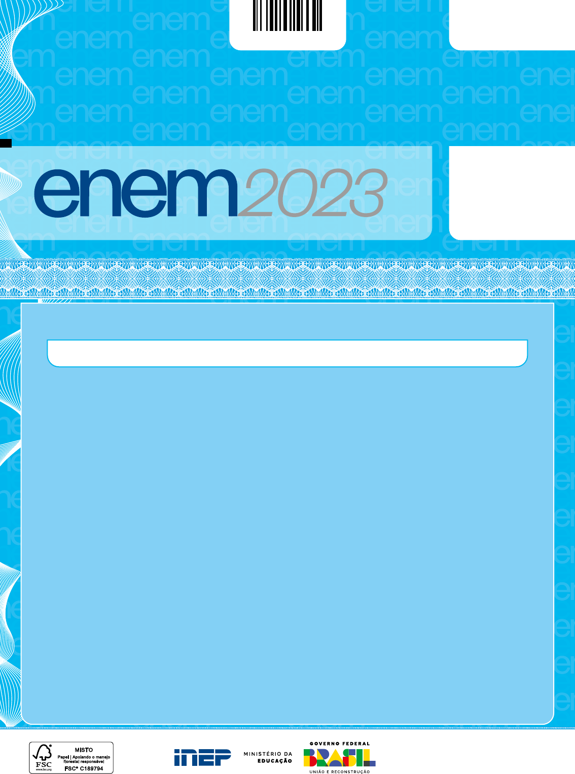 EXAME NACIONAL DO ENSINO MÉDIO PROVA DE LINGUAGENS, CÓDIGOS E SUAS TECNOLOGIAS E REDAÇÃO PROVA DE CIÊNCIAS HUMANAS E SUAS TECNOLOGIAS LEIA ATENTAMENTE AS INSTRUÇÕES SEGUINTES: 1. Este CADERNO DE QUESTÕES contém 90 questões numeradas de 01 a 90 e a Proposta de Redação, dispostas da seguinte maneira: a) questões de número 01 a 45, relativas à área de Linguagens, Códigos e suas Tecnologias; b) Proposta de Redação; c) questões de número 46 a 90, relativas à área de Ciências Humanas e suas Tecnologias. ATENÇÃO: as questões de 01 a 05 são relativas à língua estrangeira. Você deverá responder apenas às questões relativas à língua estrangeira (inglês ou espanhol) escolhida no ato de sua inscrição. 2. Confira se a quantidade e a ordem das questões do seu CADERNO DE QUESTÕES estão de acordo com as instruções anteriores. Caso o caderno esteja incompleto, tenha defeito ou apresente qualquer divergência, comunique ao aplicador da sala para que ele tome as providências cabíveis. 3. Para cada uma das questões objetivas, são apresentadas 5 opções. Apenas uma responde corretamente à questão. 4. O tempo disponível para estas provas é de cinco horas e trinta minutos. 5. Reserve tempo suficiente para preencher o CARTÃO-RESPOSTA e a FOLHA DE REDAÇÃO. 6. Os rascunhos e as marcações assinaladas no CADERNO DE QUESTÕES não serão considerados na avaliação. 7. Somente serão corrigidas as redações transcritas na FOLHA DE REDAÇÃO. 8. Quando terminar as provas, acene para chamar o aplicador e entregue este CADERNO DE QUESTÕES e o CARTÃO-RESPOSTA/FOLHA DE REDAÇÃO. 9. Você poderá deixar o local de prova somente após decorridas duas horas do início da aplicação e poderá levar seu CADERNO DE QUESTÕES ao deixar em definitivo a sala de prova nos 30 minutos que antecedem o término das provas. ATENÇÃO: transcreva no espaço apropriado do seu CARTÃO-RESPOSTA, com sua caligrafia usual, considerando as letras maiúsculas e minúsculas, a seguinte frase: 1ºº DIA 1 CADERNO AZUL Você é do tamanho do seu sonho 01 01 *010175AZ1* Azul 1 Amarelo 2 Branco 3 Rosa 4 Ledor 9 Libras 10 1 Azul 2 Amarelo 3 Branco 4 Rosa 9 Ledor 10 Libras 1 Dia 1°Capa 1 Dia 4°Capa Libras 12 Ledor 11 Azul 7 Rosa 8 Cinza 6 Amarelo 5 2 Dia 1°Capa 12 Libras 11 Ledor 7 Azul 8 Rosa 6 Cinza 5 Amarelo 2 Dia 4°Capa Bigurrilhos.indd 1Bigurrilhos.indd 1 14/06/2022 17:12:0614/06/2022 17:12:06 2 –LC • 1º DIA • CADERNO 1 • AZUL– LINGUAGENS, CÓDIGOS E SUAS TECNOLOGIAS Questões de 01 a 45 Questões de 01 a 05 (opção inglês) QUESTÃO 01 The average american tosses 300 pounds of food each year, making food the number one contributor to America’s landfills. Eat your leftovers and keep your perishables in the fridge – the Earth is counting on it. Disponível em: https://mir-s3-cdn-cf.behance.net. Acesso em: 29 out. 2021 (adaptado). Esse cartaz de campanha sugere que A A os lixões precisam de ampliação. B B o desperdício degrada o ambiente. C C os mercados doam alimentos perecíveis. D D a desnutrição compromete o raciocínio. E E as residências carecem de refrigeradores. QUESTÃO 02 No man is an island, Entire of itself; Every man is a piece of the continent, A part of the main. [...] Any man’s death diminishes me, Because I am involved in mankind. DONNE, J. The Works of John Donne. Londres: John W. Parker, 1839 (fragmento). Nesse poema, a expressão “No man is an island ” ressalta o(a) A A medo da morte. B B ideia de conexão. C C conceito de solidão. D D risco de devastação. E E necessidade de empatia. QUESTÃO 03 Things We Carry on the Sea We carry tears in our eyes: good-bye father, good-bye [mother We carry soil in small bags: may home never fade in our [hearts We carry carnage of mining, droughts, floods, genocides We carry dust of our families and neighbors incinerated [in mushroom clouds We carry our islands sinking under the sea We carry our hands, feet, bones, hearts and best minds [for a new life We carry diplomas: medicine, engineer, nurse, [education, math, poetry, even if they mean [nothing to the other shore We carry railroads, plantations, laundromats, [bodegas, taco trucks, farms, factories, nursing [homes, hospitals, schools, temples... built on [our ancestors’ backs We carry old homes along the spine, new dreams in our [chests We carry yesterday, today and tomorrow We’re orphans of the wars forced upon us We’re refugees of the sea rising from industrial wastes And we carry our mother tongues [...] As we drift... in our rubber boats... from shore... to shore... [to shore... PING, W. Disponível em: https://poets.org. Acesso em: 1 jun. 2023 (fragmento). Ao retratar a trajetória de refugiados, o poema recorre à imagem de viagem marítima para destacar o(a) A A risco de choques culturais. B B impacto do ensino de história. C C importância da luta ambiental. D D existência de experiências plurais. E E necessidade de capacitação profissional. *010175AZ2* 3–LC • 1º DIA • CADERNO 1 • AZUL– QUESTÃO 04 Spanglish pues estoy creando Spanglish bi-cultural systems scientific lexicographical inter-textual integrations two expressions existentially wired two dominant languages continentally abrazándose in colloquial combate imperio spanglish emerges sobre territorio bi-lingual las novelas mexicanas mixing with radiorocknroll immigrant/migrant nasal mispronouncements hip-hop, street salsa, spanish pop standard english classroom with computer technicalities spanglish is literally perfect LAVIERA, T. Benedición: The Complete Poetry of Tato Laviera. Houston: Arte Público Press, 2014 (fragmento). Nesse poema de Tato Laviera, o eu lírico destaca uma A A convergência linguístico-cultural. B B característica histórico-cultural. C C tendência estilístico-literária. D D discriminação cultural. E E censura musical. QUESTÃO 05 “Oh, you’ll love working here. Nobody treats you any differently just because of your age, 