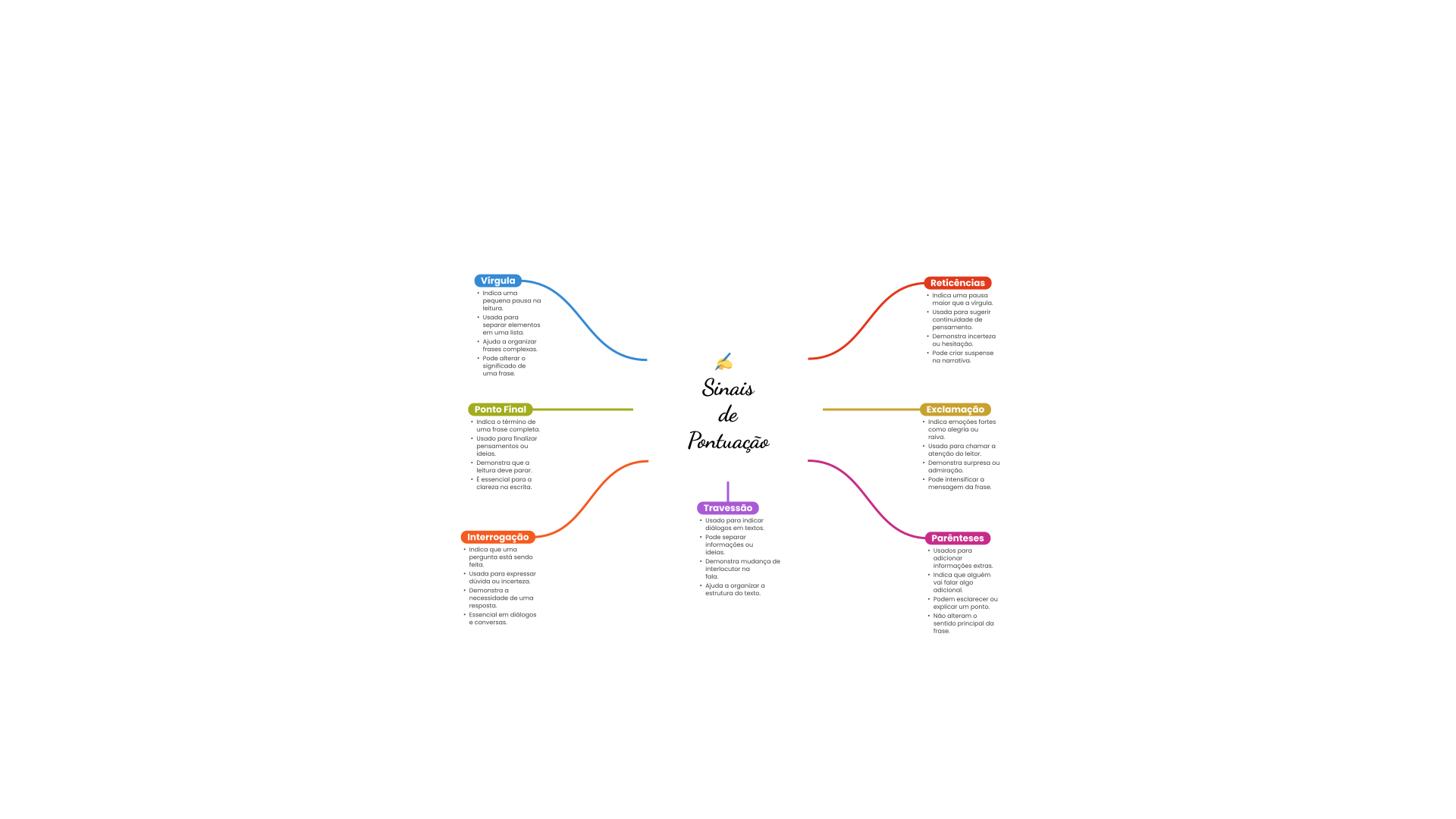 Vírgula Reticências Indioa uma uma pequena pausa que Usada para para de elementos uma ou Pode Pode no significado de uma Ponto Final Exclamação de emoções uma como ou para pensomentos ou para do que ou deve para Pode no do Travessão para Interrogação Pode Parênteses ou que para sendo adicionar de Usada para expressor Indica que ou organizer algo uma um principal do
