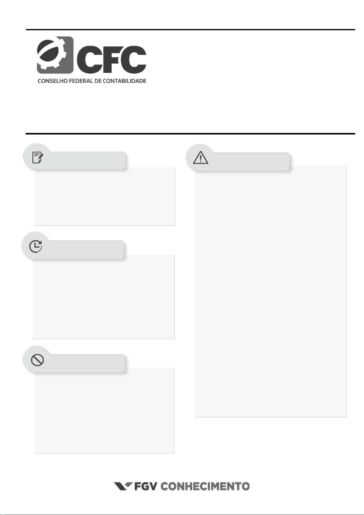 EXAME DE SUFICIÊNCIA EDITAL Nº 02/2024 PROVA OBJETIVA - TIPO 1 • Além deste caderno contendo 50 (cinquenta) questões objetivas, você receberá do fiscal de prova o cartão de respostas; • As questões objetivas têm 4 (quatro) opções de resposta (A, B, C e D) e somente uma delas está correta. • • Verifique se seu caderno de questões está completo, sem repetição de questões ou falhas. Caso contrário, notifique imediatamente o fiscal da sala, para que sejam tomadas as devidas providências; • Confira seus dados pessoais, especialmente nome, número de inscrição e documento de identidade e leia atentamente as instruções para preencher o cartão de respostas; • Para o preenchimento do cartão de respostas, use somente caneta esferográfica, fabricada em material transparente, com tinta preta ou azul; • Assine seu nome apenas no(s) espaço(s) reservado(s) no cartão de respostas; • Confira seu cargo, cor e tipo do caderno de questões. Caso tenha recebido caderno de cargo ou tipo diferente do impresso em seu cartão de respostas, o fiscal deve ser obrigatoriamente informado para o devido registro na ata da sala; • Reserve tempo suficiente para o preenchimento do seu cartão de respostas. O preenchimento é de sua responsabilidade e não será permitida a troca do cartão de respostas em caso de erro cometido pelo candidato; • Para fins de avaliação, serão levadas em consideração apenas as marcações realizadas no cartão de respostas; • A FGV coletará as impressões digitais dos candidatos na lista de presença; • Os candidatos serão submetidos ao sistema de detecção de metais quando do ingresso e da saída de sanitários durante a realização das provas. • Boa sorte! • Você dispõe de 4 (quatro) horas para a realização da prova, já incluído o tempo para a marcação do cartão de respostas; • 1 (uma) hora e 30 (trinta) minutos após o início da prova, é possível retirar-se da sala, sem levar o caderno de questões; • A partir dos 30 (trinta) minutos anteriores ao término da prova é possível retirar-se da sala levando o caderno de questões. • Qualquer tipo de comunicação entre os candidatos durante a aplicação da prova; • Anotar informações relativas às respostas em qualquer outro meio que não seja o caderno de questões; • Levantar da cadeira sem autorização do fiscal de sala; • Usar o sanitário ao término da prova, após deixar a sala. SUA PROVA TEMPO NÃO SERÁ PERMITIDO INFORMAÇÕES GERAIS CONSELHO FEDERAL DE CONTABILIDADE - CFC FGV CONHECIMENTO EXAME DE SUFICIÊNCIA 2024/2 TIPO 1 – PÁGINA 3 1 Um famoso escritor falou sobre a leitura: A leitura é para a mente o que a ginástica é para o corpo. Com essa frase, o autor quer dizer que (A) exercícios físicos devem ser feitos todos os dias. (B) a leitura, como a ginástica, deve ser feita diariamente. (C) a leitura enriquece o nosso conhecimento. (D) exercícios físicos e leitura fortalecem o corpo. 2 Assinale a frase que mostra uma expressão de causa devidamente explicada. (A) “De tanto que comeu, acabou passando mal”. / A expressão “De tanto que” apresenta a causa de algo como resultado da insistência de uma ação. (B) “Graças à chuva, as ruas ficaram alagadas”. / A expressão “Graças a” apresenta a causa como algo positivo. (C) “Ficou rico à custa de muito sacrifício”. / A expressão “à custa de” indica a causa de algo conhecido pelo interlocutor. (D) “Como haviam viajado bastante, eram bastante informados”. / O termo “Como” indica a causa como algo posterior ao acontecimento. 3 Um povoado tem 50 habitantes, dos quais 30 são do sexo feminino. Se duas pessoas diferentes desse povoado forem aleatoriamente escolhidas, a probabilidade de que ambas sejam do sexo feminino é aproximadamente igual a (A) 25% (B) 35% (C) 43% (D) 60% 4 Um capital inicial foi investido por um período. Ao fim da aplicação, o rendimento nominal foi de 80%, do qual deduziu-se imposto sobre o ganho de capital. A inflação acumulada nesse período foi de 5%. Se o ganho real dessa operação foi de 60%, é correto afirmar que a alíquota do imposto foi de (A) 15% (B) 17,5% (C) 20% (D) 22,5% 5 João vendera determinada mercadoria para Pedro, mas não recebeu o respectivo pagamento. Em razão da amizade que os unia, João estava relutante em ingressar com uma ação judicial para a cobrança do respectivo valor, mas, com a proximidade do prazo prescricional, ficou preocupado. Ao conversar com Pedro, foi dito a João que ele não deveria se preocupar, pois ele, Pedro, renunciaria à prescrição. Ao analisar a disciplina estabelecida no Código Civil brasileiro, João concluiu corretamente que a renúncia que Pedro se propôs a realizar: (A) não é admitida pela sistemática legal. (B) deve ser expressa, sendo vedada a renúncia tácita. (C) só pode ser realizada depois que a prescrição se consumar. (D) pode ser realizada antes ou após a consumação da prescrição, sendo expressa ou tácita. CONSELHO FEDERAL DE CONTABILIDADE - CFC FGV CONHECIMENTO EXAME DE SUFICIÊNCIA 2024/2 TIPO 1 – PÁGINA 4 6 João e Maria, únicos sócios da sociedade empresária Alfa, da qual Pedro era o contador responsável, faleceram em um acidente automobilístico quando se dirigiam para Alfa, não se podendo averiguar qual deles faleceu primeiro. Como João e Maria mantinham uma relação de parentesco, o momento da morte influenciaria na vocação hereditária de um e outro, o que, por via reflexa, também teria reflexos na transmissão das cotas do capital social. Nesse caso, ao analisar a sistemática estabelecida no Código Civil, Pedro concluiu corretamente que, na definição da ordem de falecimento de João e Maria, deve-se presumir que (A) o mais velho faleceu primeiro. (B) o mais jovem faleceu primeiro. (C) faleceram ao mesmo tempo. (D) o que teve o inventário aberto antes faleceu primeiro. 7 Joana, contabilista, tomou ciência de que