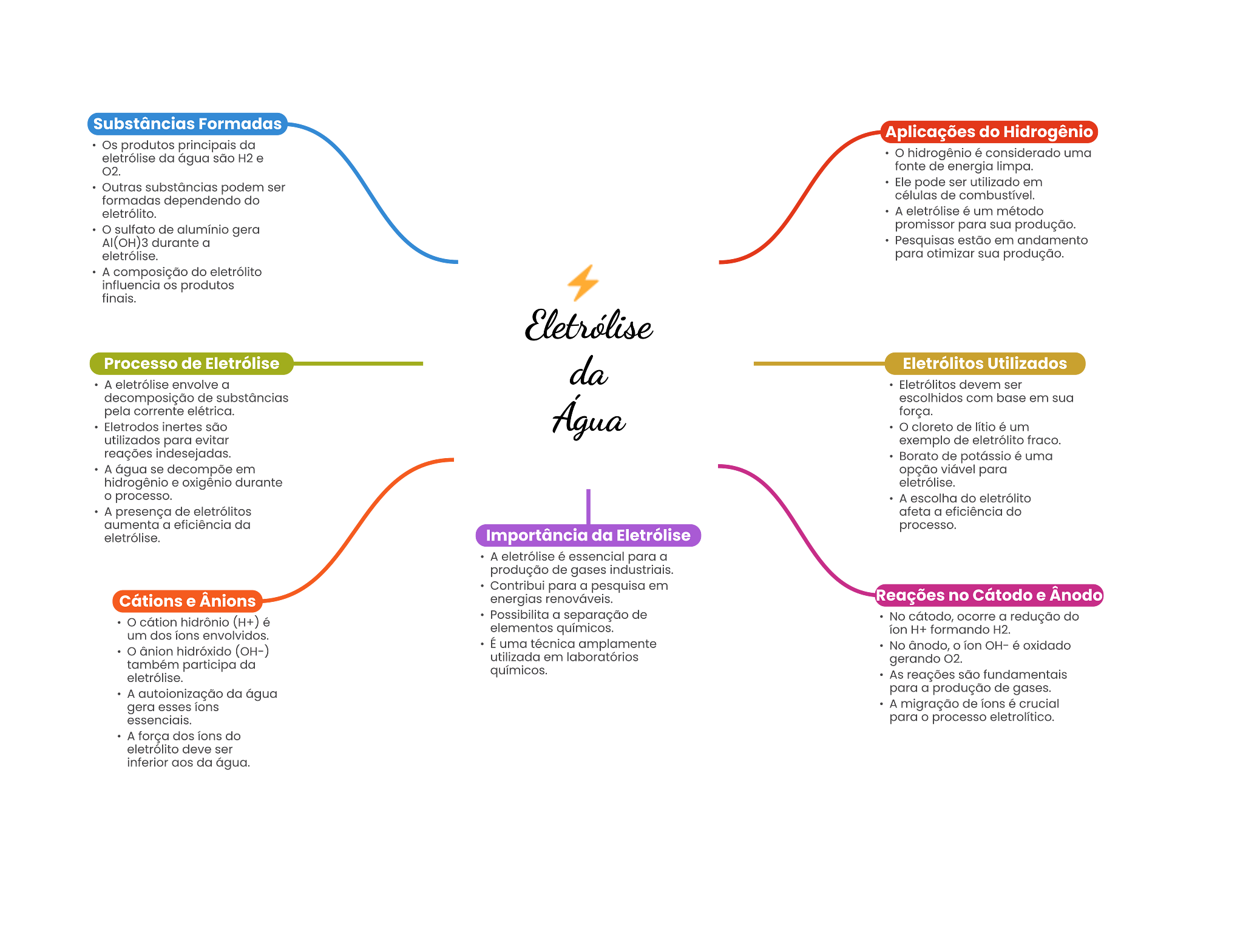 Substâncias Formadas Aplicações do Hidrogênio produtos principale da da água H2 considerado uma de energia limpa. Outras substâncias podem ser Ele pode utilizado em formadas dependendo do células de A é um método de gera promissor para sua produção. AI(OH)3 durante a estão em para otimizar sua produção. A composição do eletrólito influencia produtos Processo de Eletrólise Eletrólitos Utilizados A envolve a Eletrólitos devem ser decomposição de substâncias escolhidos com base em sua pela corrente elétrica. força. são cloreto de um utilizados para evitar exemplo de fraco. reações Borato de uma A água se decompõe em opção viável para . oxigênio o processo. A escolha do A presença de afeta a eficiência do a eficiência da processo. Importância da Eletrólise A essencial para a produção de Contribui para a em Cátions e Ânions Reações no Cátodo e Ânodo hidrônio (H+) é Possibilita a de No ocorre a redução do um dos envolvidos. elementos fon H+ formando H2. É uma técnica No ânodo, fon OH- é utilizada em laboratórios também participa da gerando A da água para a produção de gera A migração de crucial essencials. para processo A força dos do deve ser Inferior CIOS da água.