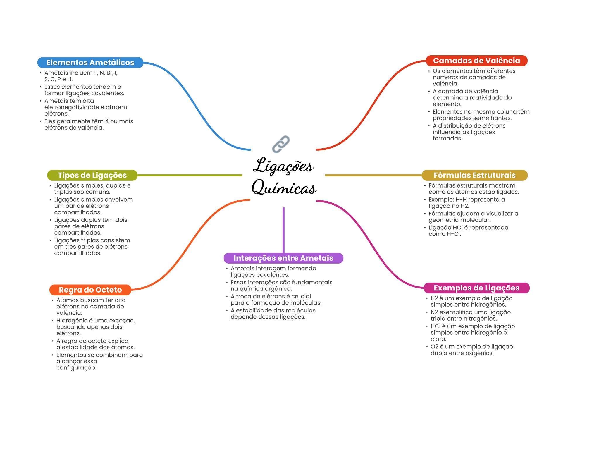 Elementos Ametálicos Camadas de Valência F, N, Br, elementos P H. números de de Esses elementos tendem a valência. formar ligações covalentes. A camada de alta determina a reatividade do . atraem elemento. elétrons. Elementos na coluna Eles 4 ou propriedades elétrons de A de elétrons as ligações Tipos de Ligações Fórmulas Estruturais Ligações simples, e são como estão ligados. Ligações simples envolvern Exemplo: representa a um par de ligação no H2. ajudam a visualizar a Ligações têm dois geometria molecular. de elétrons Ligação HCI é representada como H-CL Ligações consistem em três pares de elétrons Interações entre Ametais Ametals interagem formando ligações covalentes. são Regra do Octeto na química orgânica. Exemplos de Ligações A troca de elétrons é crucial buscam ter H2 um exemplo de elétrons na camada de para a formação de simples entre hidrogênics. A dos N2 exemplifica uma ligação uma exceção, depende ligações. tripia entre nitrogênios. buscando HCI é um exemplo de ligação simples entre hidrogênio A regra do octsto explica oloro. a estabilidade dos O2 é um de ligação Elementos se combinam para entre alcançar configuração.