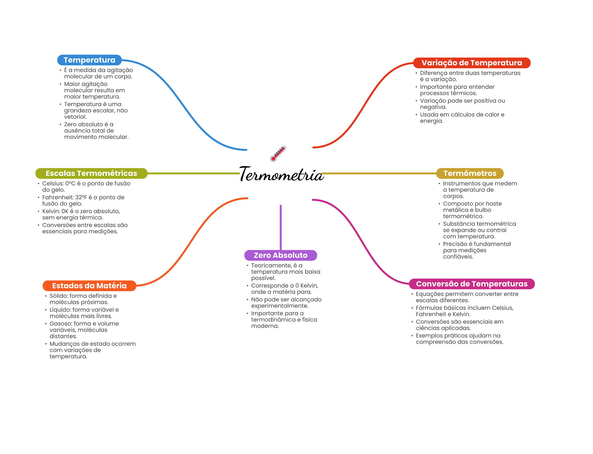 Temperatura Variação de Temperatura a medida da agitação molecular de um corpo. Diferença entre duas temperaturas 6 a agitação molecular resulta em para entender malor temperatura. processos Temperatura é uma pode ser positiva ou grandeza escalar, não negativa. vetorial. Usada em cálculos de calor Zero absoluto a energia. total de movimento Escalas Termométricas Termômetros 0°C é ponto de fusão instrumentos que medem do gelo. a temperatura de Fahrenheit: 32°F é ponto de corpos. do gelo. Composto por OK absoluto, sem energia térmica. entre são Substância para medições. expande ou contral com temperatura. Precisão é fundamental para medições Zero Absoluto a temperatura male Estados da Matéria Corresponde a 0 Conversão de Temperaturas Sólido: forma definida . onde a matéria para. Equações permitem converter entre Não pode alcançado escalas forma . mais livres. para a Fahrenheit Gasoso: forma . volume Conversões são essenciale em modema. ciências aplicadas. Exemplos ajudam na de estado occrrem das conversões. com de temperatura.