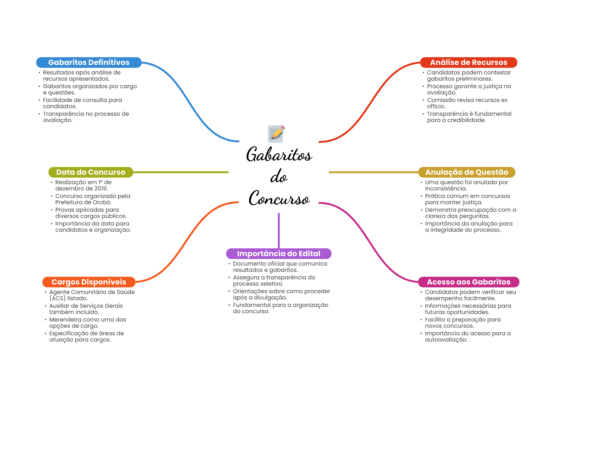 Gabaritos Definitivos Análise de Recursos Resultados após de podem contestor recursos apresentados. gabaritos preliminares. Gabaritos organizados por cargo Processo garante a justiça na questões. Facilidade de consulta para revisa recursos officio. Transparência no processo de Transparência fundamental para a Data do Concurso Anulação de Questão em de Uma questão foi anulada por dezembro de 2019. organizado pela comum em concursos Prefeitura de Orobó. para manter justiça. Provas aplicadas para Demonstra preocupação com a diversos das perguntas. Importância da data para da para . organização. a do processo. Importância do Edital Documento oficial que resultados . Assegura a do Cargos Disponíveis processo seletivo. Acesso aos Gabaritos Agente Comunitário de Saúde sobre como proceder Candidatos podem verificar seu (ACS) listado. a divulgação. desempenho de Serviços para a organização necessárias para também do concurso. futuras oportunidades. Merendeira como uma das Facilita preparação para opções de cargo. novos concursos. Especificação de áreas de Importância do acesso para a atuação para cargos. autoavallação.