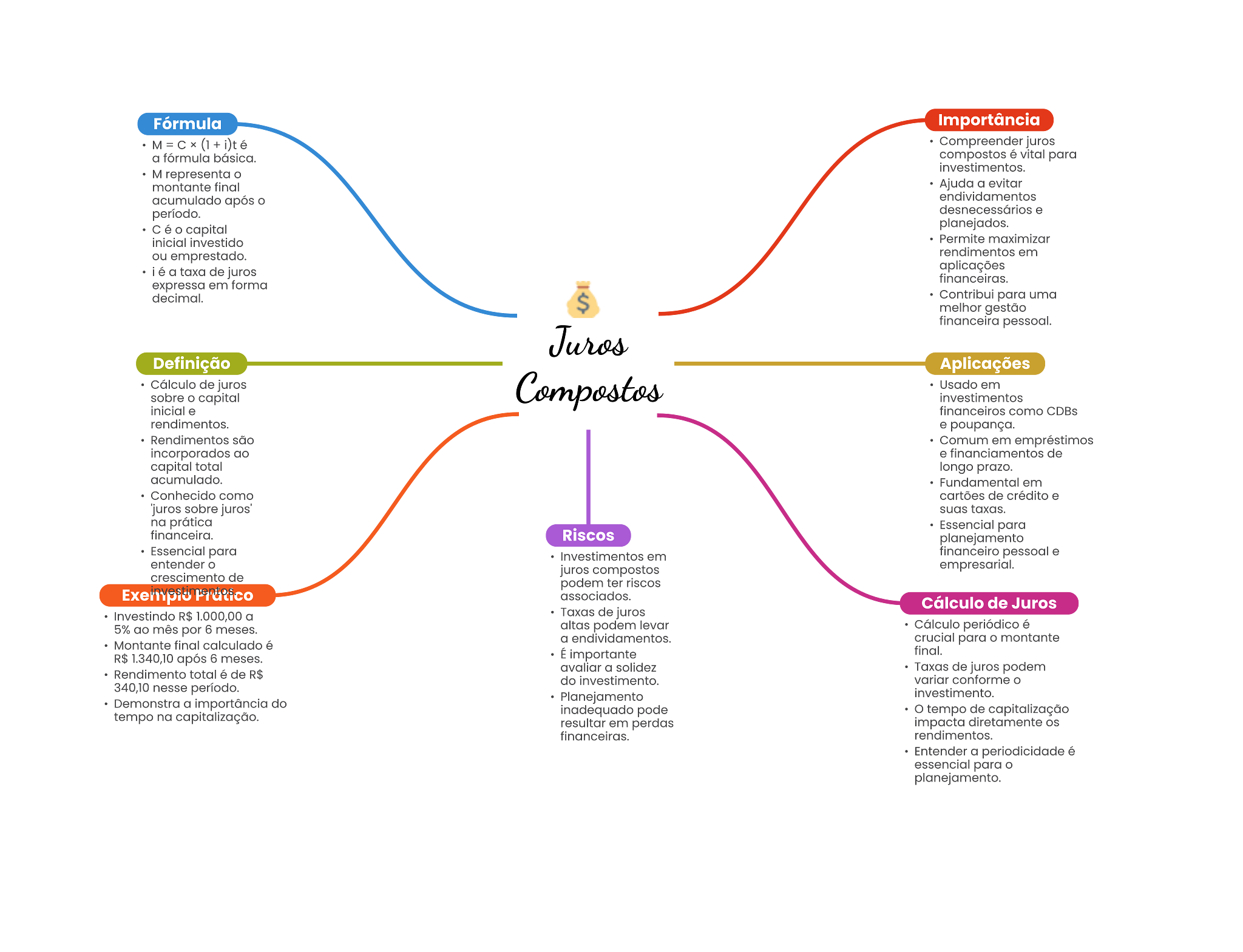 Fórmula Importância M - + Compreender juros a fórmula básica. vital para investimentos. M representa montante final Ajuda a evitor acumulado após endividamentos . o capital Investido Permite ou emprestado. rendimentos em é a de aplicações expresed em forma decimal. $ Contribui para uma melhor gestão Definição Aplicações Cálculo de juros em sobre capital investimentos Inicial financeiros como CDBs rendimentos. . poupança. Rendimentos são . Comum em empréstimos incorporados financiamentos de capital total longo prazo. acumulado. Fundamental em como cartões de crédito sobre juros' na prática Essencial para financeira. Riscos para em financeiro pessoal entender compostos crescimento de podem ter riscos associados. Cálculo de Juros - Investindo R$ 1.000,00 a de juros 5% mês por 6 altas podem levar Cálculo é Montante final calculado crucial para É final. R$ 6 messe. Rendimento total é de R$ a de juros podem do investimento. conforme 340,10 nesse perfodo. Demonstra do tempo na pode tempo de resultar em diretamente rendimentos. Entender a periodicidade é essencial para