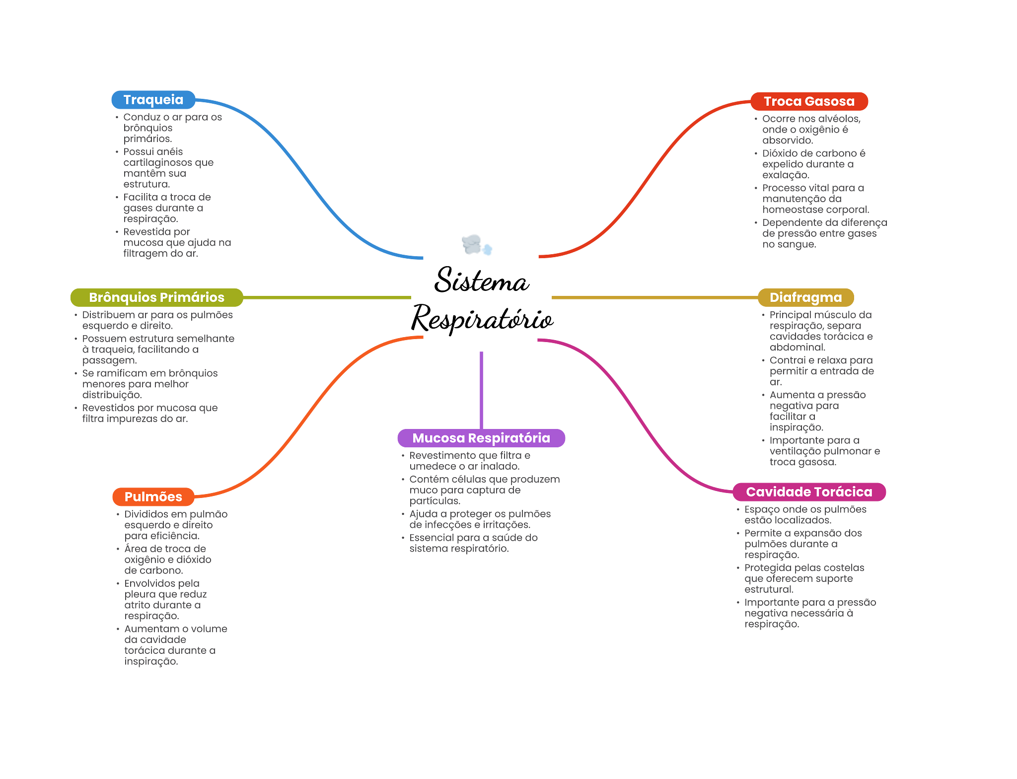 Traqueia Troca Gasosa Conduz or para Ocorre nos onde o é absorvido. de carbono que expelido durante a estrutura. Processo vital para a Facilita a troca de da gases durante a corporal. respiração. Dependente da diferença Revestida por de entre gases mucosa que ajuda na no filtragem do ar. Brônquios Primários Diafragma Distribuem ar para Principal músculo da esquerdo direito. respiração, separa Possuem estrutura cavidades . traquela, facilitando a passagem. para Se em permitir a entrada de menores para melhor ar. Aumenta a preseão Revestidos por mucosa que negativa filtra do facilitar a Mucosa Respiratória para a Revestimento que umedece or que produzem Pulmões muco para captura de Cavidade Torácica Divididos em puimão Ajuda a proteger Espaço onde os puimões esquerdo e de infecções estão localizados. para eficiência. Essencial para a do Permite a expansão dos Área de de respiratório. durante a e respiração. de carbono. Protegida Envolvidos pela que suporte que reduz estrutural. atrito durante a para a pressão respiração. negativa Aumentam o volume respiração. da cavidade torácica durante a inspiração.