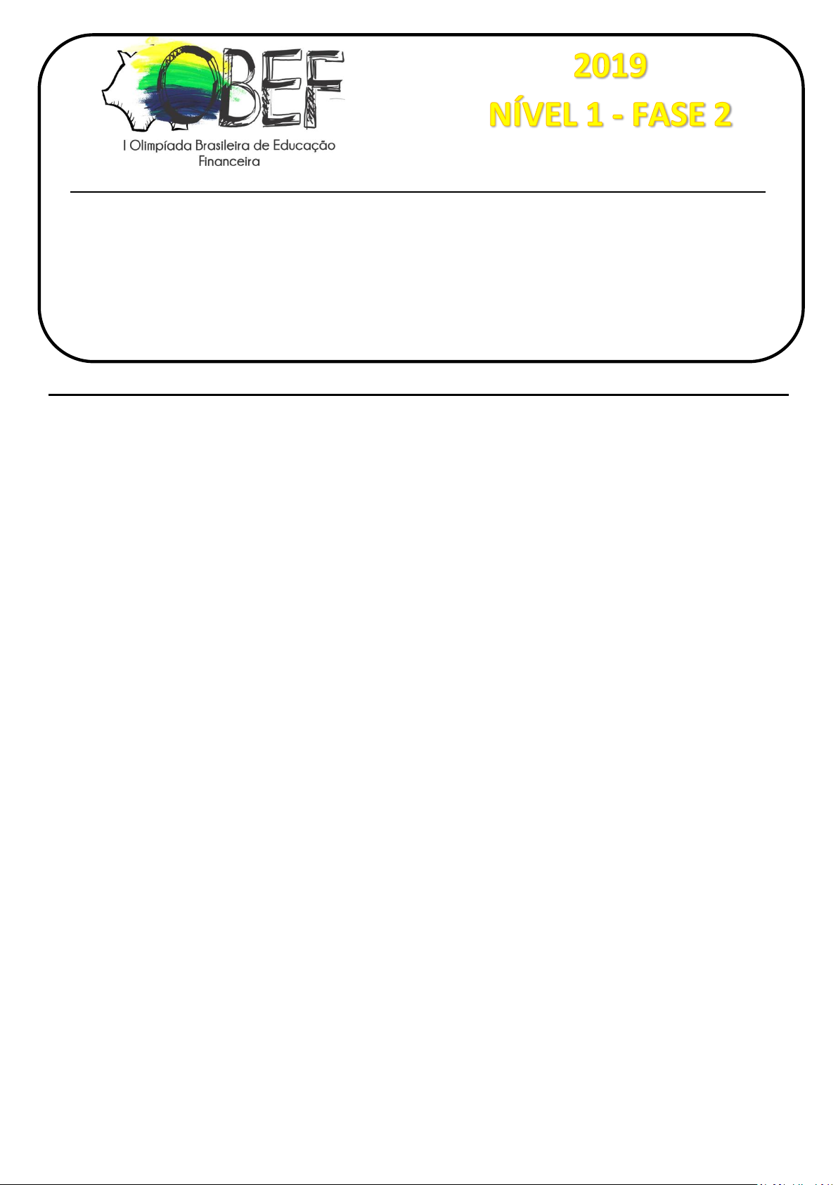 QUESTÕES DE MÚLTIPLA ESCOLHA 1.Thiago e seus três vizinhos queriam comprar uma bola para jogar na quadra do condomínio, para isso, cada um deu R$ 7,00. Sobraram R$ 4,00 de troco que devem ser devolvidos de forma igual para cada um que contribuiu. Quanto custou a bola e quanto cada um recebeu de volta? a) A bola custou R$ 32 e cada um recebeu de volta R$ 2,00. b) A bola custou R$ 33 e cada um recebeu de volta R$ 1,50. c) A bola custou R$ 26 e cada um recebeu de volta R$ 1,00. d) A bola custou R$ 24 e cada um recebeu de volta R$ 1,00. e) A bola custou R$ 28 e cada um recebeu de volta R$ 2,00. 2. Pedro está preocupado com a alta conta de água que está pagando a cada mês em sua casa. Para diminuir o valor da conta, ele e sua família decidiram começar a economizar água em casa. Qual dessas ações representa melhor uma economia de água? a) Lavar a calçada com mangueira. b) Escovar os dentes com a torneira aberta. c) Usar a máquina de lavar todos os dias. d) Fechar as torneiras e chuveiros quando não estiverem sendo usadas. e) Tomar banhos longos. 3. Larissa foi ao supermercado e comprou 10 biscoitos, cada um custava R$ 3,00. Ao passar no caixa, a atendente informou que o biscoito estava na promoção e cada um saiu por R$ 2,25. Larissa pagou com uma nota de R$ 50,00. Quanto custaram todos os biscoitos e quanto ela recebeu de troco? a) Os biscoitos custaram R$ 25,00 e ela recebeu de troco R$ 22,50 b) Os biscoitos custaram R$ 22,50 e ela recebeu de troco R$ 27,50 c) Os biscoitos custaram R$ 22,50 e ela recebeu de troco R$ 23,50 d) Os biscoitos custaram R$ 27,50 e ela recebeu de troco R$ 22,50 e) Os biscoitos custaram R$ 20,50 e ela recebeu de troco R$ 25,50 4. Betina tem R$ 7,00 em moedas de R$ 0,25. Quantas moedas ela tem? a) 14 moedas b) 24 moedas c) 26 moedas d) 28 moedas e) 30 moedas INSTRUÇÕES 1. A prova contém quinze (15) questões: doze (12) questões do tipo múltipla escolha e três (3) questões abertas. 2. Para responder às questões de múltipla escolha, identifique APENAS UMA ÚNICA alternativa correta e marque a letra correspondente no gabarito existente na Folha de Respostas. 3. Para responder às questões abertas, utilize APENAS o espaço destinado para cada uma das questões na Folha de Respostas. 4. A prova tem duração de três (3) horas. Você somente poderá entregar a prova após ter transcorrido uma hora do início. 5. Maria possui um caderninho onde organiza todas as suas receitas e despesas financeiras. Dentre os gastos feitos por Maria no mês de junho, qual deles não representa uma necessidade? a) Alimentação b) Energia Elétrica c) Compra de celular d) Mensalidade escolar e) Compra de medicamentos 6. Na escola do Marcos todo final de ano acontece a Festinha de Natal e nesse dia tem um amigo secreto. Ele tem na carteira a quantia de R$ 67,40. Ele precisa comprar o presente e ainda comprar o ingresso da festinha, que custa R$ 15,60. Qual presente ele poderá escolher? Marque a alternativa correta: a) presentes ( B ) e ( C ) b) presentes ( B ) e ( A ) c) apenas presente ( A ) d) apenas presente ( B ) e) apenas presente ( C ) 7. Qual animal representa o cofre onde as pessoas costumam juntar moedas? a) Coelho b) Elefante c) Rinoceronte d) Porco e) Hipopótamo 8. Larissa e Nicole são irmãs e precisam ir à livraria comprar seu material escolar. Elas não têm carro e o local fica longe da casa delas. Quais opções abaixo seriam mais econômicas para as duas: I) 4 passagens de ônibus no valor de R$ 3,60 II) 2 corridas de Uber de R$ 7,20 III) 2 corridas de Táxi de R$ 10,50 a) Opções I ou II b) Opções II ou III c) Opção I ou III d) Apenas Opção II e) Apenas Opção III 9. Observando a Turma da Mônica podemos identificar que: Fonte: https://www.folhadecapanema.com.br/noticia/o rcamento-familiar-e-tema-da-segunda-edicao-da- serie-especial-de-gibis-da-turma-da-monica a) A turma da Mônica está elencando as suas receitas. b) A turma está se reunindo para tratar sobre suas Despesas. c) A turma está fixando receitas e despesas. d) Mônica ensina como tratar sobre receitas fixas. e) A Magali ensina sobre Lucro. ( A ) ( B ) ( C ) R$ 53,80 R$ 42,80 R$ 51,80 10. Carla, José e Lucas tiveram a brilhante ideia de poupar dinheiro para comprar seus próprios presentes de Natal e resolveram fazer uma contagem quando chegasse no meio do ano para ver quem tinha arrecadado mais. Joana e Luana também quiseram participar. CARLA JOSÉ LUCAS JOANA LUANA Assinale abaixo a alternativa correta. a) Joana poupou R$ 200,00. b) Carla juntou R$ 32,00. c) Lucas foi o que menos arrecadou. d) José arrecadou o dobro do que Luana juntou. e) Carla e Luana pouparam a mesma quantidade. 11. Luiz deu a sua filha Luísa um cofre de presente. Ele prometeu que se ela juntasse dinheiro no cofre, ganharia o dobro do que juntou. Então, Luísa economizou durante três meses para comprar seu patinete. A imagem mostra a quantidade de moedas que Luísa conseguiu juntar em seu cofrinho. Qual o valor total que ela irá receber para comprar seu patinete? a) R$ 32,00 b) R$ 27,00 c) R$ 21,50 d) R$ 16,00 e) R$ 14,50 12. Marque a alternativa que indique as definições de gastos necessários, supérfluos e desperdício, respectivamente: A – São os gastos que não geram bem-estar nem estão ligados às necessidades ou aos desejos; B – São os gastos considerados importantes; C – São os gastos que geram bem-estar e estão ligados mais aos desejos. a) C / B / A b) B / A / C c) B / C / A d) A / B / C e) C / A / B QUESTÕES ABERTAS Alice foi à feira com sua mãe comprar frutas. O valor de cada uma das frutas está na tabela abaixo: Agora responda as questões a seguir: 13. Qual o valor que Alice vai pagar se comprarem 3 maças, 3 abacaxis e 5 kiwis? 14. Qual o valor total que elas irão pagar se comprarem 4 peras e 5 laranjas? 15. Ajude Alice e sua mãe a somarem o valor total da compra, sabendo que foram 3 maças, um cacho de uva, 4 peras, 1 pêssego, 3 abacaxis, 5 laranjas, 1 melanc