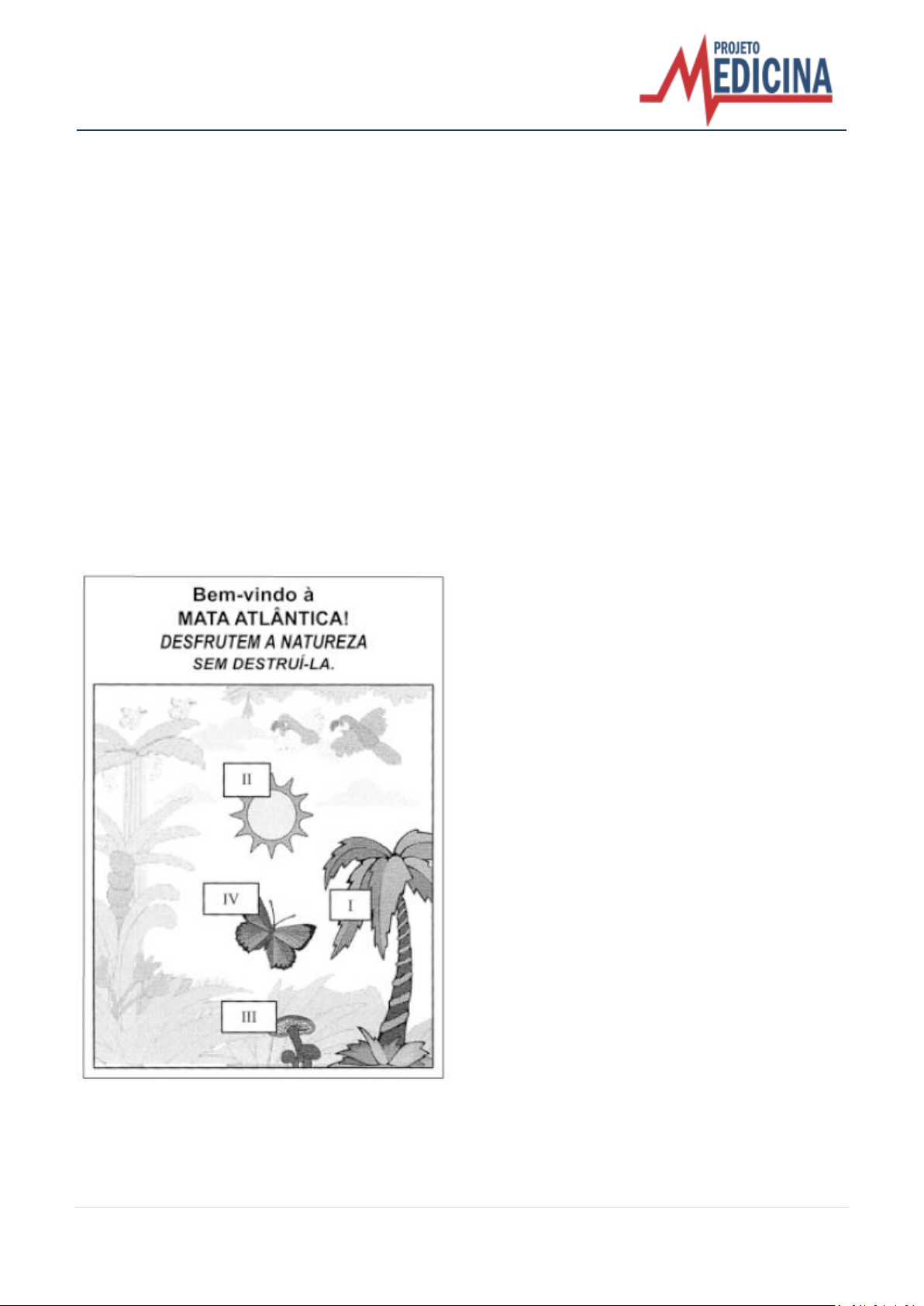 1 | P r o j e t o M e d i c i n a – w w w . p r o j e t o m e d i c i n a . c o m . b r Exercícios de Biologia Energia no Ecossistema 1. UFMS Quanto aos ecossistemas, é correto afirmar que; 01. se referem ao conjunto dos componentes exclusivamente bióticos; 02. produtores, consumidores e decompositores são as três categorias de seus componentes abióticos; 04. se referem ao conjunto dos componentes exclusivamente abióticos; 08. um aquário, um lago e uma floresta são exemplos de ecossistemas, embora possuam tamanhos diferentes; 16. se referem ao conjunto dos componentes bióticos e abióticos; 32. sua extensão não é percorrida por um fluxo de energia e matéria, não estabelecendo diferentes níveis tróficos; 64. pode ser definido como biocenose + biótopo, sendo biocenose sua comunidade e biótopo o conjunto de elementos abióticos do ambiente. Dê, como resposta, a soma dos itens corretos. 2. UFRN Observe o cartaz afixado na entrada da área. A partir do cartaz, *Ribossomildo comenta que, sem energia, não há vida. Utiliza os elementos ilustrados (I, II, III e IV) para informar que a energia é: a) introduzida na comunidade biótica por I, sendo ransferida, sob a forma química, aos demais seres vivos; b) obtida do ambiente físico e passa de ser vivo a ser vivo, retornando integralmente ao ecossistema, pela ação de III; c) originada em II, sendo fixada, sob a forma química, diretamente por IV; d) utilizada por III, a partir de compostos orgânicos, quando ele realiza a fotossíntese. *Ribossomildo = personagem fictício = experiente pesquisador. 3. FUVEST-SP Qual das alternativas distingue organismos heterotróficos de organismos autotróficos? a) Somente organismos heterotróficos necessitam de substâncias químicas do ambiente. b) Somente organismos heterotróficos fazem respiração celular. c) Somente organismos heterotróficos possuem mitocôndrias. d) Somente organismos autotróficos podem viver com nutrientes inteiramente inorgânicos. e) Somente organismos autotróficos não requerem gás oxigênio. 4. U.F. Uberlândia-MG Assinale a alternativa correta. a) Os heterótrofos são organismos fotossintetizantes que se utilizam dos autótrofos, decompositores e detritívoros para sua alimentação, reciclando o sistema. b) As plantas constituem a base das cadeias alimentares, são consumidores primários, que se utilizam de água e sais minerais para produzir tecidos através da fotossíntese. c) Predador de topo é o animal que se instala no alto de uma região, sendo, em geral, um bom caçador, pois possui uma visão privilegiada da área de caça. d) Um passarinho, ao predar uma lagarta de borboleta, é considerado um consumidor terciário, pois a planta é o primário e a lagarta o secundário. e) A base das cadeias alimentares é formada pelos organismos produtores, seres autótrofos, fotossintetizantes, muito abundantes na Terra. 5. U.E. Ponta Grossa-PR Sobre conceitos ecológicos, assinale o que for correto. 01. Biocenose é o conjunto das diversas espécies que habitam uma mesma região. 02. Biótopo é o conjunto de componentes físicos e químicos do ambiente onde vive uma comunidade biológica. 04. Ecossistema é o conjunto formado pela comunidade dos seres vivos e os fatores abióticos, em interação. 08. Nicho ecológico é o conjunto de relações e atividades próprias de uma espécie. 16. Hábitat é o local onde vive determinada espécie. Dê como resposta a soma das alternativas corretas. 6. Mackenzie-SP Considere o esquema abaixo, que representa uma teia alimentar. I, II, III, 2 | P r o j e t o M e d i c i n a – w w w . p r o j e t o m e d i c i n a . c o m . b r IV e V constituem os vários níveis tróficos. Os fungos podem ocupar todos os níveis tróficos acima, EXCETO: a) I b) II c) III d) IV e) V 7. U. Católica-GO O esquema abaixo representa relações existentes entre os ecossistemas aquáticos e os ecossistemas terrestres. Utilize V (verdadeiro) ou F (falso). ( ) As relações mútuas existentes entre os diversificados seres vivos e a troca de energia que ocorre entre eles, é denominado ecossistema. ( ) O fluxo de energia entre os ecossistemas dá-se pela existência de seres produtores, fitófagos, predadores e necrófagos. ( ) Na figura anterior podemos caracterizar como predadores: homem, gaivota, pelicano e o peixe grande. ( ) Nos peixes, que possuem um sistema complexo para obtenção de oxigênio disperso na água, não encontramos pulmões, somente brânquias. ( ) A maioria dos estudos ecológicos a respeito do meio ambiente exclui completamente o homem das relações existentes entre os ecossistemas. Quando isso ocorre, o estudo está caminhando para erros gravíssimos. ( ) O cerrado corresponde a um dos maiores ecossistemas brasileiros mas, na verdade, não podemos considerá-lo importante como a Amazônia. Não existem aqui árvores frondosas, assim, ecologicamente, o cerrado não é tão significante. 8. UFPB No texto a seguir, estão em negrito termos correspondentes aos diferentes NÍVEIS DE ORGANIZAÇÃO utilizados em biologia. Todos os indivíduos da mesma espécie animal que estavam vivendo na região ficaram ameaçados por diferentes bactérias que eram capazes de romper a barreira imposta pela pele, causando sérios danos aos organismos. Nesses casos a ação dos macrófagos conduzidos pelo sangue até o local da inflamação foi de suma importância. De acordo com a ordem em que esses termos aparecem no texto, os NÍVEIS DE ORGANIZAÇÃO utilizados são: a) comunidade – organismo – tecido – tecido – sistema; b) comunidade – célula – tecido – tecido – célula; c) população – organismo – órgão – célula – tecido; d) população – célula –tecido –célula –tecido; e) comunidade – organismo – órgão – célula – sistema. 9. VUNESP Considere as três cadeias alimentares a seguir. I. vegetação → insetos → anfíbios v cobras → fungos. II. vegetação → coelho → gav