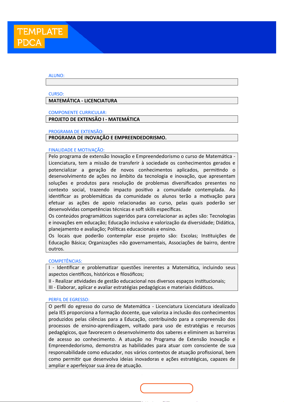 Impresso por Bernardo, E-mail bmeireles@uolinc.com para uso pessoal e privado. Este material pode ser protegido por direitos autorais e não pode ser reproduzido ou repassado para terceiros. 16/10/2025, 14:06:16 !"!#$%&'(&)!*("&##'"+'#!%",-!. &!%+!/%"!"''(#%!&'01'#!#'&2"&%' !#' %&!3! ! !*( # &)' &2"&%' !!#'/ "-&# #'&))"&%#!*4'&5"%#! %& ! &)!*(/6+!'&%!" '+*4' #+%' !! '+*( # "!' #)'7!#' '&%' & &%$% '!/ %!3&# "!% '-) ! "+&#!# &%"!#!8 #&-7! !' ",-!' #! "+&#!# ' !+&' %( ! "-)!*( !! 0%+! !' !*4' # ! !&!#!' ! +'/ !' 6+!' #( ' #'&))#!'"%9&!'%:&!'';'#+!*(&+')!)!3!*(#!#)'#!#>#,-!/ !&?!"&%!)!!*(>=-!'#+!&!'&'&8 ' !' 6+ #( &%"! '' ?% '( '!'> &'-%+*4' # #+!*(@,'!> !&3!*4'&( )&!"&%!'/''!*4'#!/#&% +%'8 A . #&-7! "!-3! 6+'%4' &&%' ! !%",-!/ &+&# '+' !'%'&B7'/2'%C'7'C7'> .!3!!-)#!#'# '%(#+!&!&'#)'''!*'&'-%+&!'> .!!/!!!)!!'%!%: !'#! C !'"!%!'##,-'8 7# ''#+'#!%",-!.&!%+!&!%+!#!3!# !&!!0"!*(#&%/6+)!3!!&+'(#'&2"&%' #+3#'!'9&!'!!!#+!*(/&%+&#!!!"&'(#' ''' # &'&.!! "/ )%!# !! +' # '%!%: !' +'' #! C '/6+0!)"#'&))"&%#''!'"&"!'!!' # !'' ! &2"&%8 !%+!*( & !"! # $%&'( &)!*( "&##'"/ #"&'%! !' 2!#!#'!!!%+! "&'&%#'+! '&'!#!#"#+!#/&'),'&%$%'#!%+!*(7''&!/" ""-6+#'&))!#!'&)!#!'!*4''%!%: !'/!!3'# !"!!0*!'+!,!#!%+!*(8 D Acesso vitalício + 1 ano de benefícios! Aproveitar oferta Impresso por Bernardo, E-mail bmeireles@uolinc.com para uso pessoal e privado. Este material pode ser protegido por direitos autorais e não pode ser reproduzido ou repassado para terceiros. 16/10/2025, 14:06:16 EFAG !&?!"&% !&3!*( !-)#!#&)!*( "!#!#'( @HI ?-) # !! " # !"! # $%&'( " &)!*( "&##'"#+'#!%",-!.&!%+!'%,!&!#!0!% ##''"&!'&2"&%'"+-#'&!'#'&))#'&+'/"! 7&!#!##!!!"+&#!#&5"%%&C "&##" #!#+!*(/!''"%&!3!&#! !*(#&2"&%'#'&))#'&!' !*4'!"!&#!'2!#!#'#' '''8 J .& !'&)!*4'"#+!*(> .#+!*(&+')!)!3!*(#!#)'#!#> .#,-!/!&?!"&%!)!!*(> .=-!'#+!&!'&'&8 K@@L / !''! %0!&8 #+!*( ! #! !$! 	&!' &%&!&!' '-)!''!&)!*(&!#+!*()+"M8(!+@+2/NODP8 /,)# +'8&)!*4'!#!'&!#+!*(!'!8% &'/NODQ8 /+!&!&!I""!&8=-!'#+!&!'@!'!&!"+" ++!#&'& '8% +/NOND8 I/ +!&8 #+!*( &+')! !#! 1' 79&!' '+!/ +#-)!/ ='!&%%+!8(!+&%&%+'/NONO8 R8 !# H':8 !&?!"&%/ '%( '!*( '!8 D8 #8 ( !+S!/NODM8 T/!U&%#>HJ@T/6+8+&#!"&%'" '%( #?%'&'%+&#"%9&!'!! &!?%'8V8#8(!+ %!'/NOND8 /!!8)'#!#/+=+'!?%'#! C '8(!+ & ! !&& @!'/NODW8 / &!&#! #' !&%'8 &*4' # #+!*( '!*'/ ,-!'/ %# !' !!2!#' #! #+!*( ( '!8 +-! &%'!'/ NONO8 : +&+&!/''!!-)#!#:!!'+! !&3!*(+'#!"%# !8'': +"#+"&%&%!-) !"!#$%8?!!'&%!*4'!'&%!#!'& 8 N Acesso vitalício + 1 ano de benefícios! Aproveitar oferta Impresso por Bernardo, E-mail bmeireles@uolinc.com para uso pessoal e privado. Este material pode ser protegido por direitos autorais e não pode ser reproduzido ou repassado para terceiros. 16/10/2025, 14:06:16 &'( &%'##7&'+!'%!/$'?-)'#'&))"&%+'%&%,)FG#! !&3!*(#!'!*4'&#!'FG&) *+,!-../"! )%$.#/.!0$!80/# !$!#+"&%) *+,!-../"! )%$.! #!.01"%)#.2)!.343445."$0"3464# /018 "&#!!'%!#!& !?.'&''!%+&#!##&%+"!' "%!'#+" !&'"&%&!&!%("%!&%!"'"%""6+!-!# '+*4'#'+&%$%X &!''DY?-)''2!6+!'"%!'#"'!#&%'1'+!'%!!'+ ?%8!!''/6+&=&#!#!?-)')!'%! "#"%!'#'&=) "!#!+"8S&'',6+)9!)+")7!%7"7#"8#'6+)9 &&%"%!'!#&%'1'+!'%!"#0&%'?-)'/"!'&(''%&?!8 #'2#''!0"!"!&%&2!0#!''9&!#'+!'%!8 %''/'%!6+'+!''2!'8''!&0"!*(%!":"#),'#!!#!"'+ !%C&!#-)#!#'$%&'&'%!'8 H 8 Segue sugestão de perguntas para ulizar na entrevista com o parceiro. SUGESTÃO DE SCRIPT DE ENTREVISTA 1. Quais os principais problemas, fragilidades ou diculdades que a instuição/parceiro convive com maior frequência? 1.1. Os problemas estão arculados com o programa/conteúdo proposto no componente curricular? Se não esver, será necessário voltar à pergunta 1. 1.2. É possível resolver ou migar os problemas idencados no prazo de duração de projeto de extensão. Se não for possível deve voltar à pergunta 1. 1.3. A solução ou migação auxiliará a comunidade ou um grupo de pessoas da comunidade? Se não auxiliar deve voltar à pergunta 1. 2. Quais serão as pessoas envolvidas na ação para buscar resolver ou migar os problemas idencados? 3. Onde será realizada a ação? Z Acesso vitalício + 1 ano de benefícios! Aproveitar oferta Impresso por Bernardo, E-mail bmeireles@uolinc.com para uso pessoal e privado. Este material pode ser protegido por direitos autorais e não pode ser reproduzido ou repassado para terceiros. 16/10/2025, 14:06:16 4. Há limitação de pessoas ou restrição para acesso ao local indicado? 5. Quais serão as pessoas beneciadas diretamente? 6. Necessitará de insumos/recursos nanceiros para a realização da ação? 7. Será necessário agendamento? 8. Qual o período, diada semana, horário que será realizada a ação? 8 8 K 39'( & 3 6 : 68';"?- & !"!!3!#[ FG FG & !"!!%&#!!3!*(#?%[ FG FG 2"?- & !"!!%&#!!3!*(#?%[ FG FG ?%!%&#!'%!#!&'-%+*('2#![ FG FG T+)&''#!##"+#!&*!#'%!%: ![ FG FG "!''-)/"&&!'"+#!&*!'&)!''%!%: !'[ :'( 8@AA8 ABC $""7"!AD"" !!!%)#!%"A /) #" #%") V Acesso vitalício + 1 ano de benefícios! Aproveitar oferta Acesso vitalício + 1 ano de benefícios! Aproveitar oferta