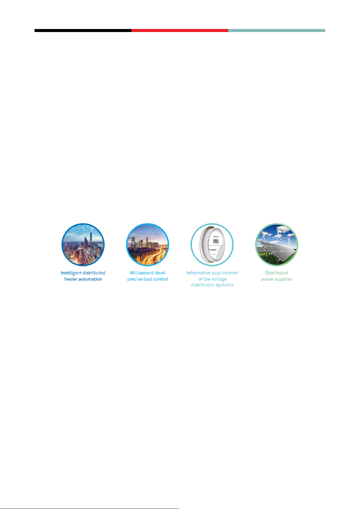 2 Using optical-fiber to build terminal access networks is expensive and has difficulties in deployment due to the massive-connections and wide-coverage, while 5G can solve this problem effectively. 2. 5G network slicing to enable the smart grid 5G network slicing is an ideal choice to enable smart grid services. It divides the 5G network into logically isolated networks, where each one can be seen as a slice. 5G network slicing allows the power grid to flexibly customize specific slices with different network functions and different SLA (Service Level Agreement) assurances according to the needs, to meet different network requirements of various services mentioned above. The innovation project proved that 5G network slicing can meet the terminal access network's demand for wide coverage, low latency, high bandwidth, high reliability, high security, and differentiation of network capability, with lower cost and easier deployment than traditional fiber network. 2.1. Application scenarios of smart grid The innovation project involved research on the network requirements of smart-grid’s scenarios, 4 typical scenarios were identified to be prospective for 5G Network Slicing. Figure 1. Typical service scenarios of smart grids 2.1.1. Intelligent distributed feeder automation The key requirements of intelligent distributed feeder automation for communications networks are as follows: • Ultra-low latency: milliseconds • High isolation: Distribution automation is a service in I/II production area of the power grid. It must be completely isolated from services in III/IV management areas. • High reliability: 99.999%