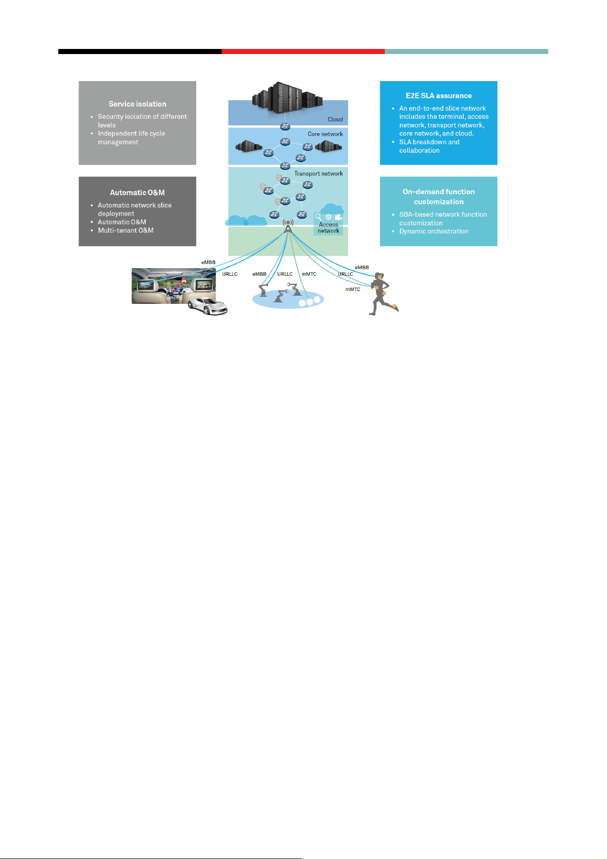 5 Figure 6. Key capabilities of 5G Network Slicing 2.2.1. Technical Perspective 5G network slicing can meet connection requirements of core industrial control services of power grids. • 5G is a new-generation wireless communications technology. Its design considers the scenarios of not only human-to-human communication but also communications between things and humans and things. The ultra-low latency and massive access network capabilities can effectively meet the connection requirements of core industrial control services on the power grid. • Network slicing technology, which is first introduced by 5G networks, can achieve security and isolation at the same level as dedicated networks with significantly less construction costs compared with dedicated fiber networks built by enterprises. • The 5G edge computing technology enables distributed gateway deployment to implement local traffic processing and logical computing, which saves bandwidths and reduces latency. This further meets the ultra-low latency requirements of industrial control services on the power grid. 2.2.2. Service Perspective From the perspective of service characteristics, typical smart grid service scenarios discussed in this document are classified into two types: • Industrial control services: Typical examples are intelligent distributed feeder automation and millisecond-level precise load control. Ultra-reliable and low-latency communication (URLLC) is a typical slice designed for this type of services. • Information collection services: Typical examples are information acquirement of low voltage distribution systems and distributed power supplies. Massive machine type communication (mMTC) is a typical slice designed for this type of services. In addition to the two typical slice types, the power grid industry may also require enhanced Mobile Broadband (eMBB) (typical service scenario: remote inspection using drones) and voice communications (typical service scenario: manual maintenance and inspection).