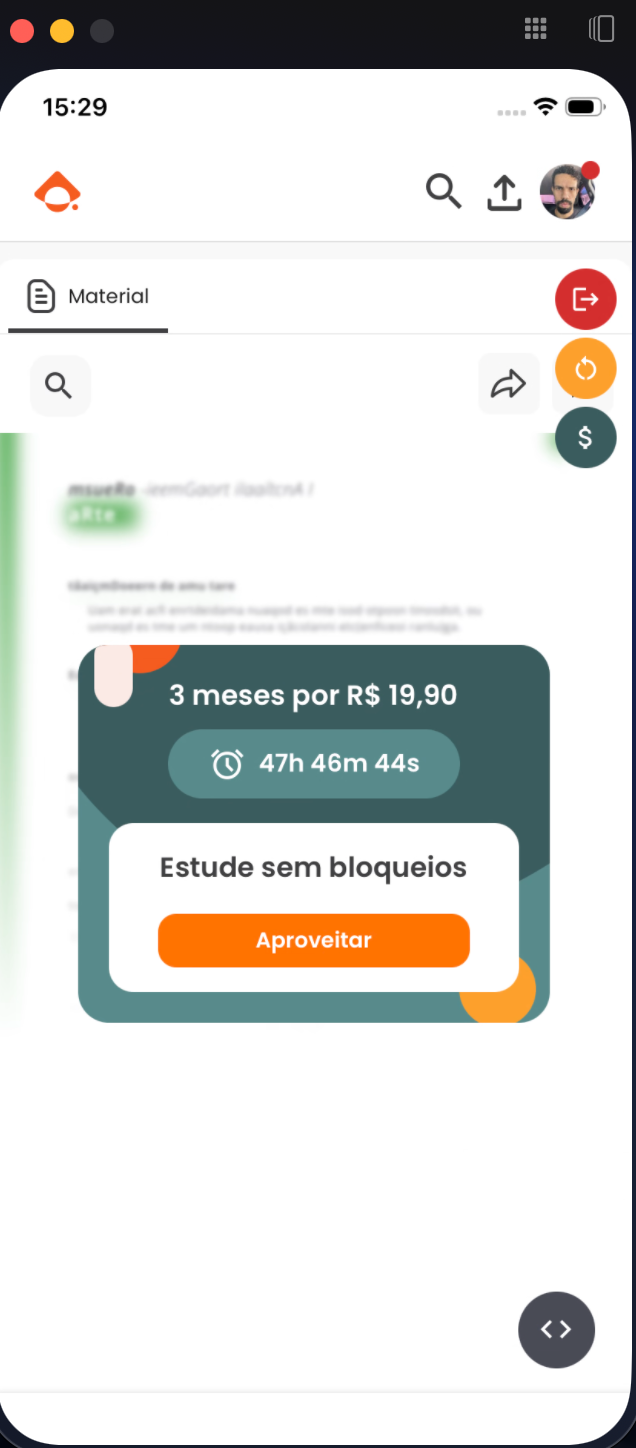 15:29 . Material $ aRte 3 meses por R$ 19,90 47h 46m 44s Estude sem bloqueios Aproveitar