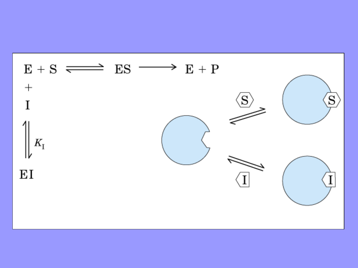 * INIBIÇÃO COMPETITIVA * Efeito de duas concentrações de inibidor competitivo (IC1 < IC2) sobre a velocidade da reação enzimática. KM1 e KM2 são valores do KM aparente para as concentrações IC1 e IC2 de inibidor, respectivamente. * INIBIÇÃO COMPETITIVA * INIBIÇÃO NÃO COMPETITIVA * Efeito de duas concentrações de inibidor não-competitivo (INC1<INC2) sobre a velocidade da reação enzimática. * INIBIÇÃO NÃO COMPETITIVA * Transformação de Lineweaver-Burk para a reação enzimática sem inibidor e em presença de inibidores competitivo e não-competitivo. * REGULAÇÃO DA ATIVIDADE ENZIMÁTICA 1 – Regulação da disponibilidade da enzima 2 - Regulação da atividade da enzima: Modulação Alostérica: Retroinibição Modulação covalente: Fosforilação Ativação proteolítica: Enzimas sintetizadas na forma de um precursor. * ENZIMAS Constitutivas Induzidas ou Adaptativas * Enzimas Constitutivas Organismos possuem independente da constituição do meio Organismos sintetizam quando em presença do substrato Enzimas Induzidas ou Adaptativas * ENZIMAS ALOSTÉRICAS * MECANISMO DO EFEITO ALOSTÉRICO * * RETROINIBIÇÃO O produto final de uma via, inibe a enzima que catalisa a primeira reação. * * * * * * * * * * * * * * * * *