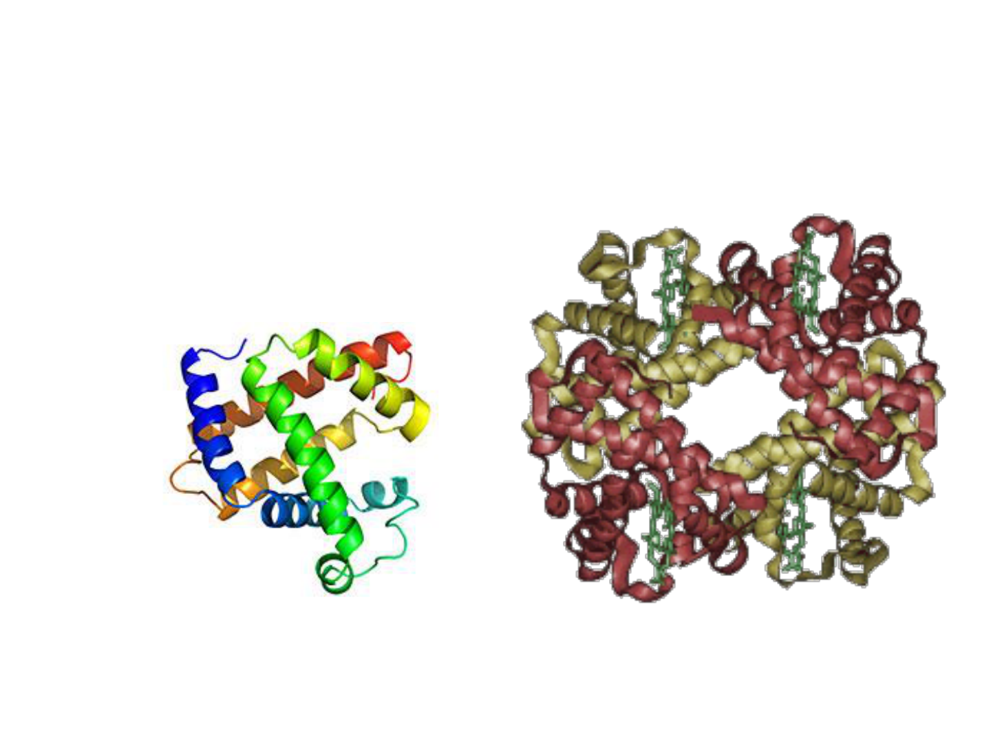 * Mioglobina Hemoglobina Por que estudar a Hemoglobina e a Mioglobina? * Importante para o transporte e armazenamento de O2 Uma das proteínas mais bem estudadas (primeira estrutura 3D determinada) Modelo de relação estrutura-função (anemia falciforme primeira doença genética explicada à nivel de função de proteína – Linus Pauling 1949) Por que estudar a Hemoglobina e a Mioglobina? * Importante para o transporte e armazenamento de O2 Uma das proteínas mais bem estudadas (primeira estrutura 3D determinada) Modelo de relação estrutura-função (anemia falciforme primeira doença genética explicada à nivel de função de proteína – Linus Pauling 1949) Por que estudar a Hemoglobina e a Mioglobina? A transição da vida anaeróbia para aeróbia foi um grande passo na evolução. * Comparação entre a Mioglobina e a Hemoglobina a a b b * Comparação entre a Mioglobina e a Hemoglobina Ambas apresentam um grupo prostético a a b b * Mesmo Grupo Prostético - Quatro anéis pirrólicos unidos por pontes metínicas ( -C=) (Tetrapirrol - Porfina) - Possui substituintes: metil, vinil e propionato. (Protoporfirina) PROTOPORFIRINA + FERRO = Fe-PROTOPORFIRINA IX Cada uma das cadeias possuem um grupamento HEME: * Mesmo Grupo Prostético - Quatro anéis pirrólicos unidos por pontes metínicas ( -C=) (Tetrapirrol - Porfina) - Possui substituintes: metil, vinil e propionato. (Protoporfirina) PROTOPORFIRINA + FERRO = Fe-PROTOPORFIRINA IX Cada uma das cadeias possuem um grupamento HEME: * Mesmo Grupo Prostético - Quatro anéis pirrólicos unidos por pontes metínicas ( -C=) (Tetrapirrol - Porfina) - Possui substituintes: metil, vinil e propionato. (Protoporfirina) PROTOPORFIRINA + FERRO = Fe-PROTOPORFIRINA IX Cada uma das cadeias possuem um grupamento HEME: * Ligação ao O2 x CO * Mesmo Grupo Prostético * Ligação ao O2 x CO Afinidade 25000x maior Afinidade 250x maior * Ligação ao O2 x CO Afinidade 25000x maior Afinidade 250x maior Impedimento Estérico * Ligação ao O2 x CO Afinidade 25000x maior Afinidade 250x maior Morte por monóxido de carbono * Como a ligação com O2 causa grande alteração conformacional na hemoglobina? * Como a ligação com O2 causa esta grande alteração conformacional? Fe2+ 0,39 Å * Princípio Funcional da Hemoglobina * Princípio Funcional da Hemoglobina Low affinity state High affinity state * Princípio Funcional da Hemoglobina Low affinity state High affinity state Cooperatividade * É o principal componente das hemácias. Hb com O2 – forma a oxihemoglobina que é responsável pela cor do sangue Hb sem O2 – tem tonalidade mais escura Hemoglobina * CURVA DE DISSOCIAÇÃO DO OXIGÊNIO * * Transporta o oxigênio para todo o corpo e recolhe o dioxido de carbono * Transporta o oxigênio para todo o corpo e recolhe o dioxido de carbono O dioxido de carbono é produzido pelas mitocondrias * Equilíbrio entre CO2 e O2 no organismo CO2 + H2O H2CO3 H+ + HCO3- Anidrase Carbônica Metabolismo Solúvel no sangue Transportado pela Hemoglobina Diminui o pH Efetor alostérico * Efeito do pH na afinidade da hemoglobina pelo O2 (Efeito Borh) * Equilíbrio entre CO2 e O2 no organismo CO2 + H2O H2CO3 H+ + HCO3- Anidrase Carbônica Metabolismo Efetor negativo da Hemoglobina Solúvel no sangue Transportado pela Hemoglobina [O2] R T * Equilíbrio entre CO2 e O2 no organismo CO2 + H2O H2CO3 H+ + HCO3- Anidrase Carbônica Metabolismo NH3 Transportado pela Hemoglobina (não se liga ao HEME) NH CO2 OOC - Estabiliza a forma T * Tecidos liberam o CO2 e diminuindo assim o pH. 2,2 Bisfosfoglicerato Resumo Hemoglobina Liga Oxigênio Mecanismo de alterar a ligação * 2, 3 –BISFOSFOGLICERATO (BPG) O BPG reduz a afinidade da hemoglobina pelo O2 O BPG só se liga a Hb se ela estiver sem o O2. Quando ela é oxigenada ela então libera o BPG * 2, 3 –BISFOSFOGLICERATO (BPG) O BPG reduz a afinidade da hemoglobina pelo O2 O BPG só se liga a Hb se ela estiver sem o O2. Quando ela é oxigenada ela então libera o BPG Este processo é importante para adaptação fisilógicas, como por exemplo em altas altitudes. * 2, 3 –BISFOSFOGLICERATO (BPG) Cavidade entre a subunidade b no estado T * Mutação E6bV causa alteração estrutural na Hemoglobina * Deoxi-hemoglobina S agrega facilmente Hemácias distorcidas, frágeis e menos flexíveis * Doença causada pela hemoglobina Hemacias em formato de foice * Capillary Blockage Bloqueio dos vasos perifericos causando infarto * CURVA DE DISSOCIAÇÃO DO OXIGÊNIO Aumento de CO2 e uma baixa de pH * * *