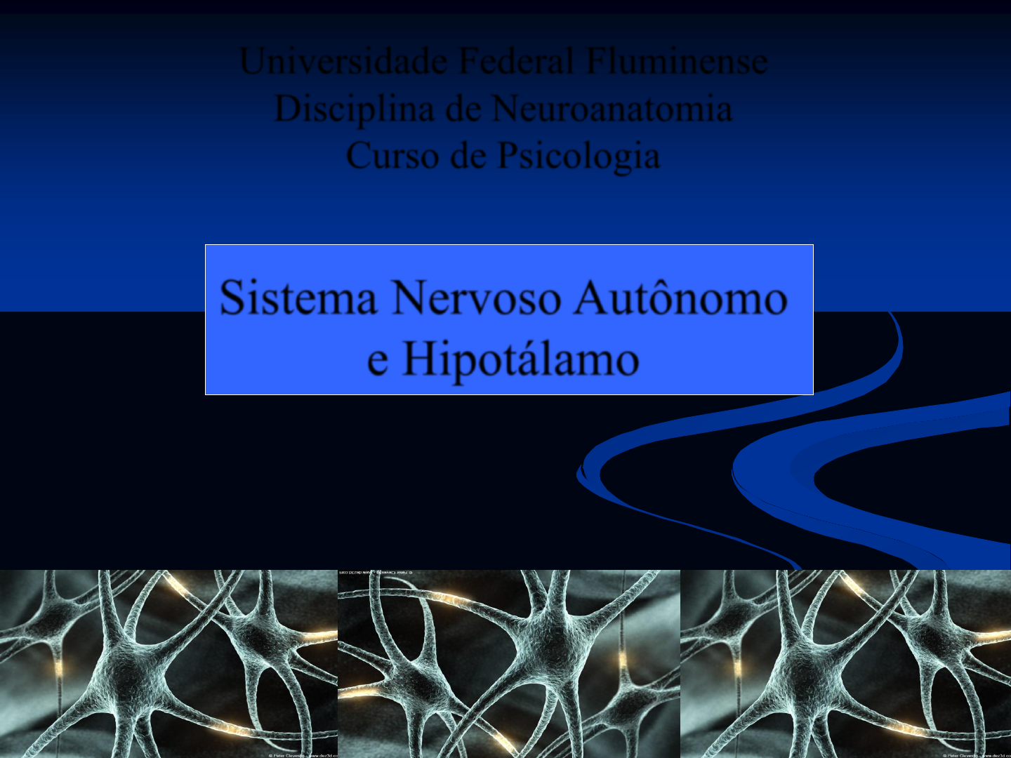 * Universidade Federal Fluminense Disciplina de Neuroanatomia Curso de Psicologia Sistema Nervoso Autônomo e Hipotálamo Prof. Walter Machado-Pinheiro * SNA Músculo esquelético x liso (voluntário x involuntário) Vida de relação x Vida vegetativa SN Somático x SN Autônomo SNA e Homeostasia * SNA SN Somático x SN Autônomo Efetores Número de Neurônios * SNA SN Simpático x SN Parassimpático obs: importância no tratamento Localização da fibra pré-ganglionar: Tóraco-lombar x Crânio-caudal (III, VII, IX, X) Farmacologia: # Pré-ganglionares: ACh # Pós-ganglionares: ACh (PS) N-Adr (Simp) # Receptores ACh: pré-pós – nicotínicos pós-efetor – muscarínicos # Receptores N-Adr: alfa e beta * SNA SN Simpático x SN Parassimpático Diferenças Funcionais: - Simpático: Reação de “Luta-ou-Fuga” ou Reação de Alarme. - PS: “rest and digest” * SNA SN Simpático x SN Parassimpático Reação de “Luta-ou-Fuga”: - Preparar o organismo para um intenso trabalho muscular. Coração (Força e frequência): PA Coronárias Sist. Respiratório (frequência e calibre) Metabolismo da glicose Vasos Sanguíneos (pele, músculos coração e vísceras) Tubo digestivo Supra-renal (adrenalina) Pelos Pupila obs: Pênis (Simp e PS) PS: Rest-and-Digest * SNA e Hipotálamo Hipotálamo: Cabeça Ganglionar do SNA - Comanda o SNA - Regula os comportamentos motivados - reprodutor, fome/sede, raiva/agressão - Controla a Hipófise A estimulação de alguns dos núcleos do hipotálamo, pode: - Aumentar a FC e a PA, - Dilatar a pupila, - Produzir sudorese, - Aumentar a motilidade e secreção GI, - etc... * Diencéfalo: Hipotálamo Hipotálamo, SNA e Homeostasia HIPOTÁLAMO Sistema Límbico Pré-frontal Tálamo SNA Hipófise Formação reticular Fome e saciedade Ritmos circadianos Obs: Doenças Psicossomáticas * Fim... * Coelho “sem noção”... * * * * * * * * * *